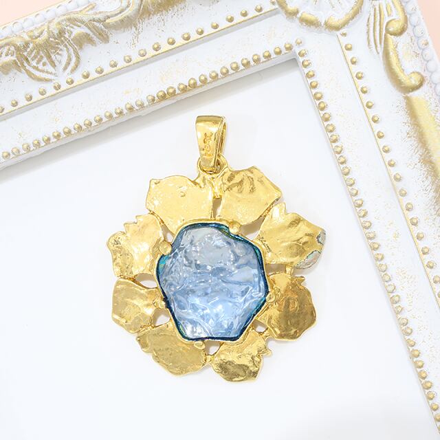 < イヴサンローラン > ブルーストーンゴールドフラワーネックレスチャームトップ jv-ne-1005
