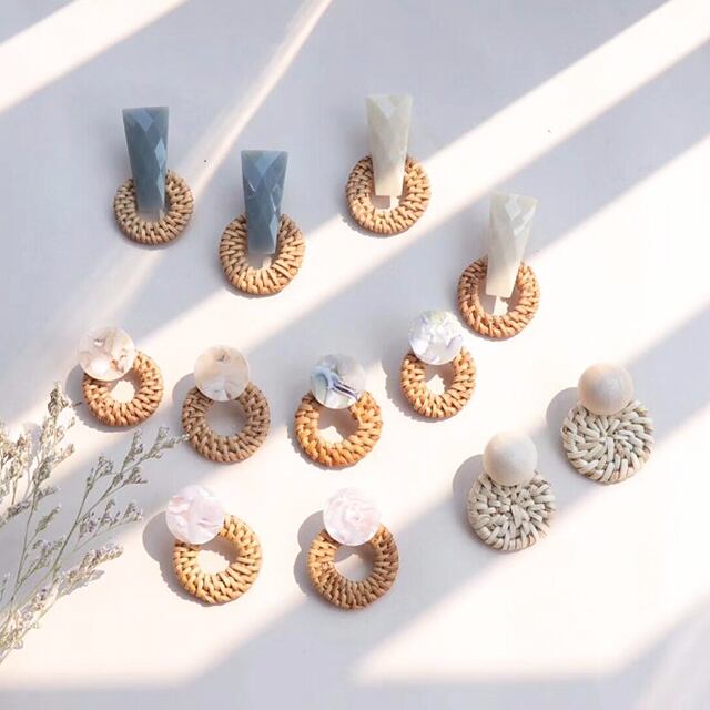 藤素材の使ったピアスは珍しいので目を惹くと思います。