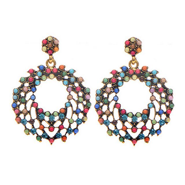 【JVselect】 マルチカラーストーンラウンドアンティークゴールドぶら下がりピアス jvst-pc-1019