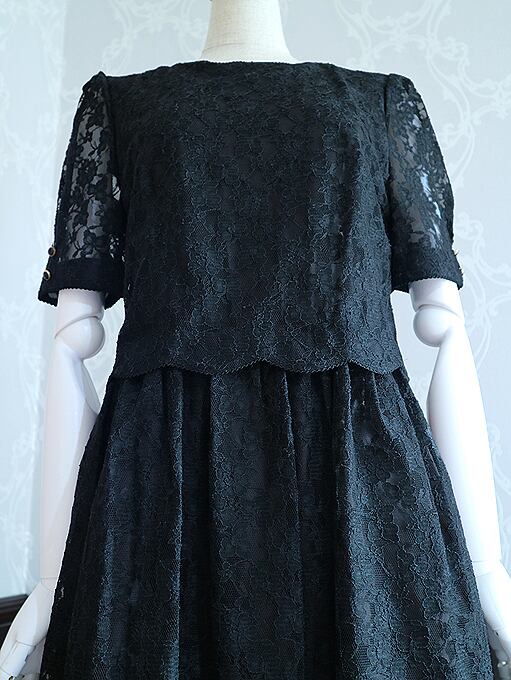 ヴィンテージドレス / 日本製総レース半袖ブラックドレス jv-dress-1001