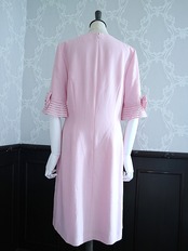 薄手のピンクですと全体的に安っぽくなってしまうこともあるのですが、こちらのワンピースは素材、縫製もよくデザインの上品なので高級感があります。
