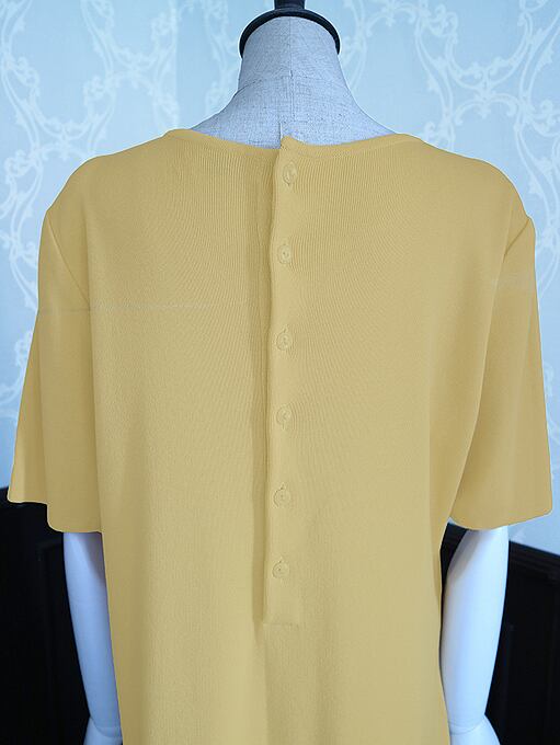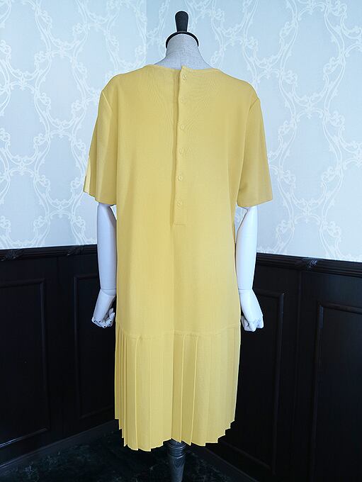 ヴィンテージワンピース / 日本製イエロー半袖プリーツニットワンピース jv-op-1005