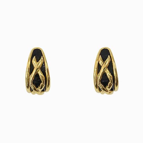 ヴィンテージイヤリング / 日本製ブラックレースアップ ゴールドイヤリング jv-ea-1003