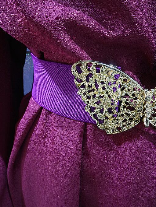 写真で着用しているパープルのベルトは元々ついているものではないですがベルトをするとスタイリングの幅は広がりますのでセットに販売させていただきます。