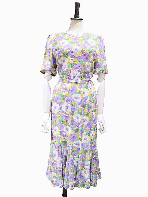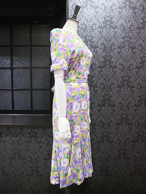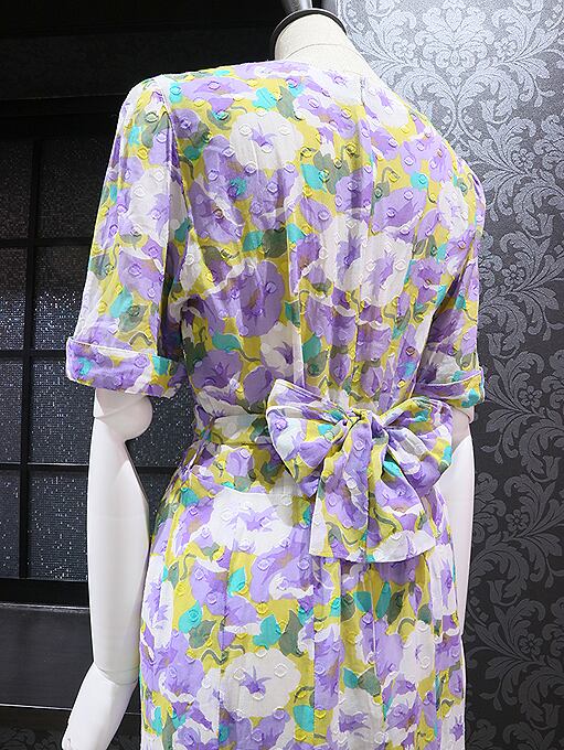 ヴィンテージワンピース / 花柄&ドット半袖コットンワンピース jv-op-1011