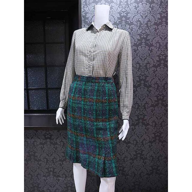 グリーン系のチェック柄ウールスカートです。
