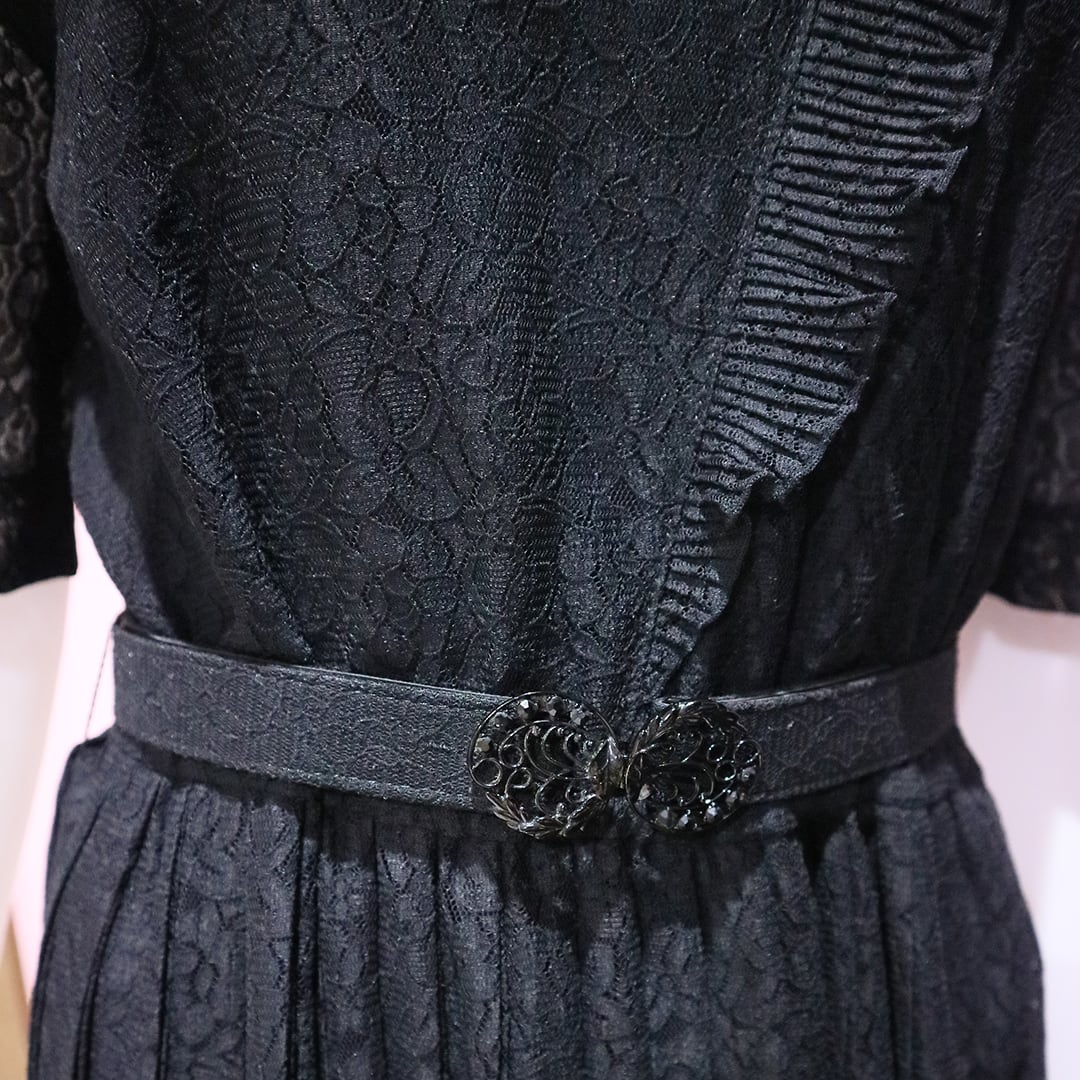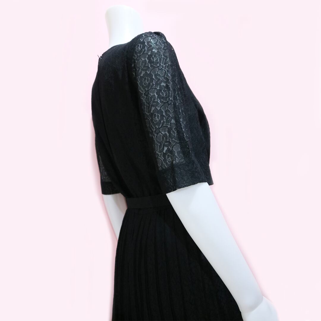 ヴィンテージワンピース / 日本製総レースブラックプリーツワンピース jv-op-1014