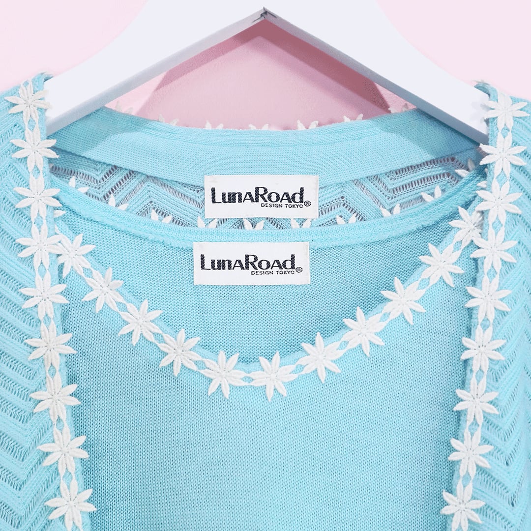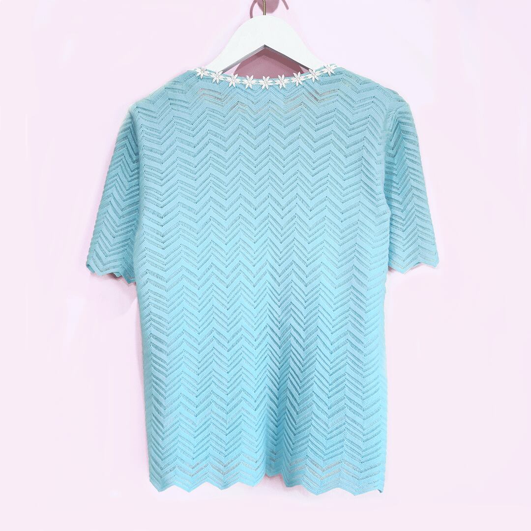 ヴィンテージニット/ フラワーモチーフ半袖ニットアンサンブル jv-tops-1007