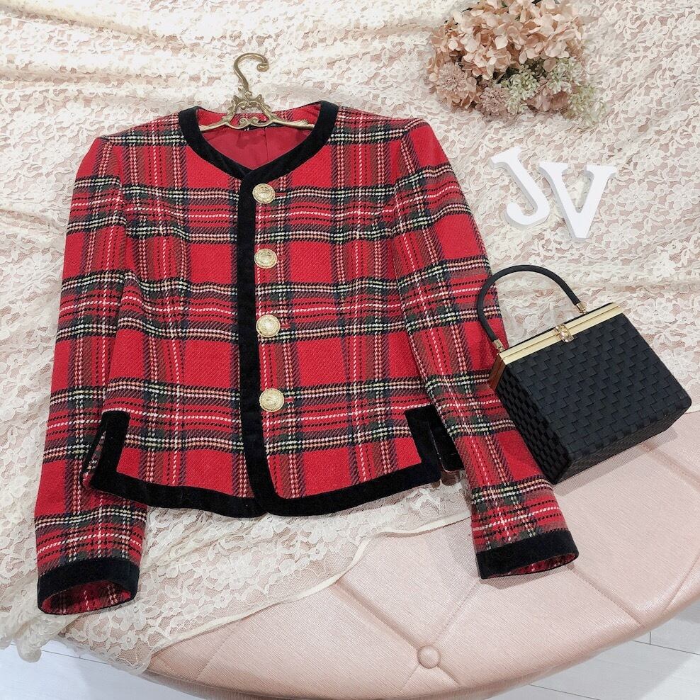 タータンチェックはガーリーっぽい雰囲気があるのですが、こちらのジャケットは肩パッドが付いていることや、ウエストが絞られているデザインなのでモードっぽい大人な雰囲気です。
