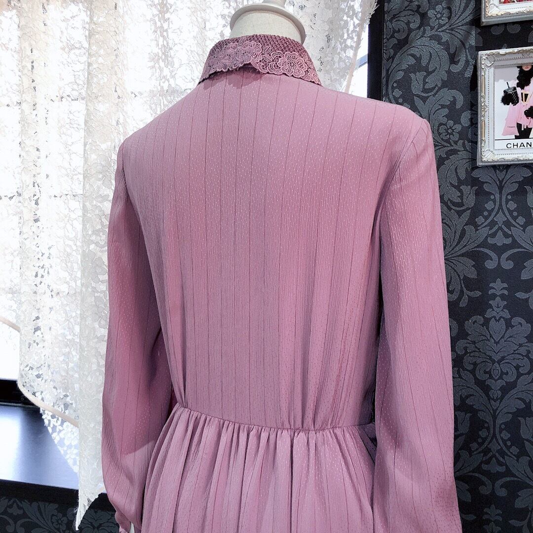 ヴィンテージワンピース / 日本製くすみピンク長袖レース刺繍ワンピース