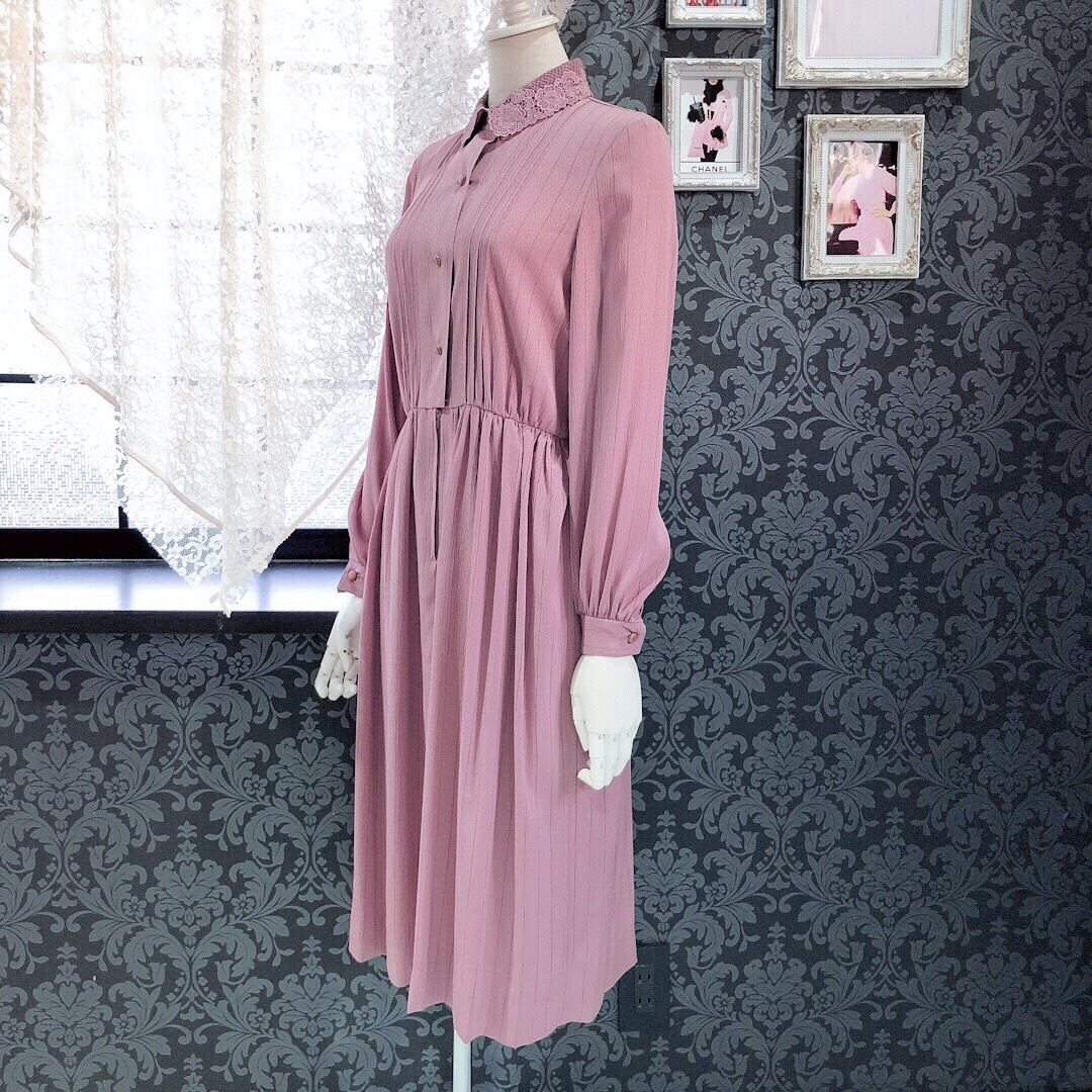 くすみピンクが上品な日本製ヴィンテージワンピースになります。