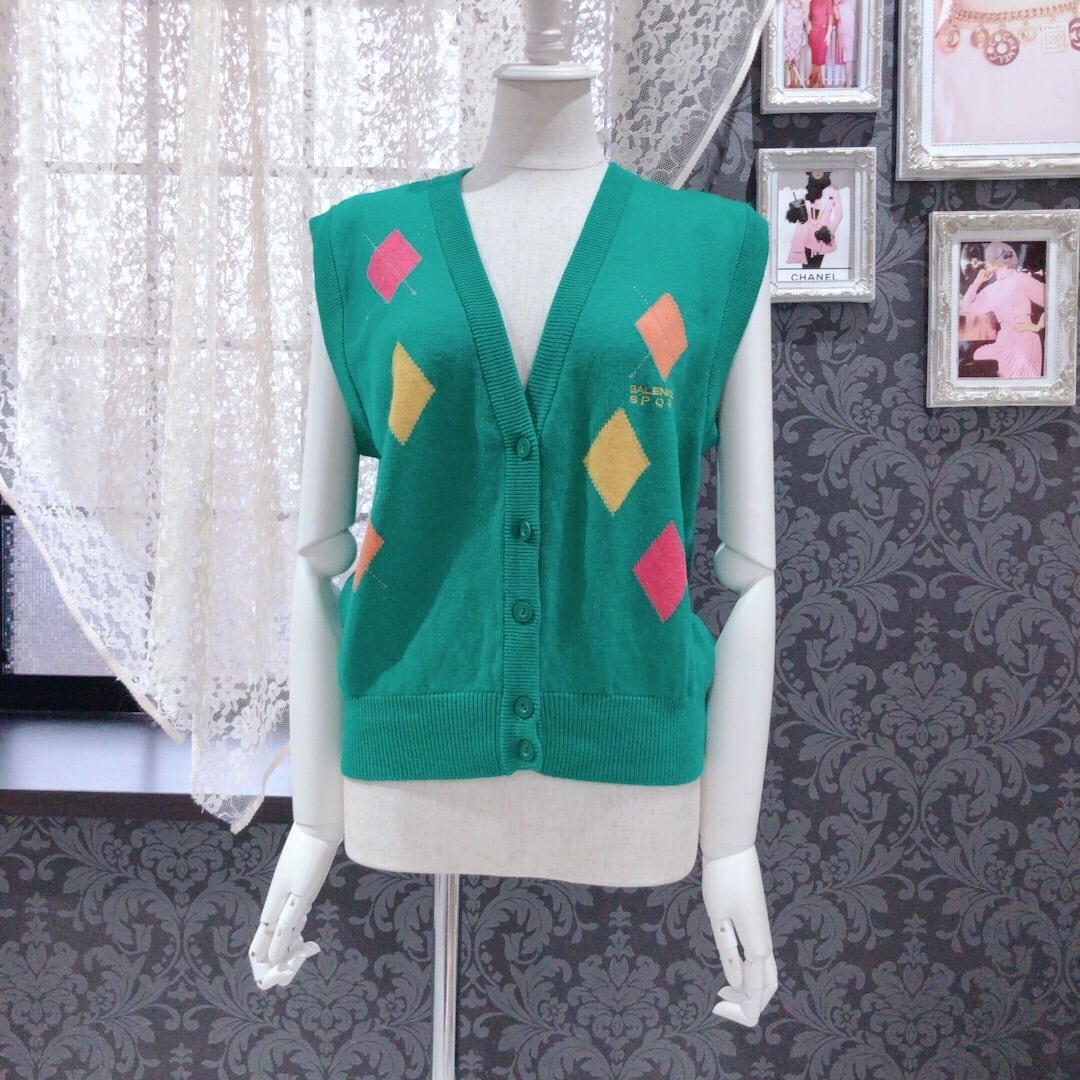 バレンシアガスポーツのPOPな配色のアーガイルニットベストです。