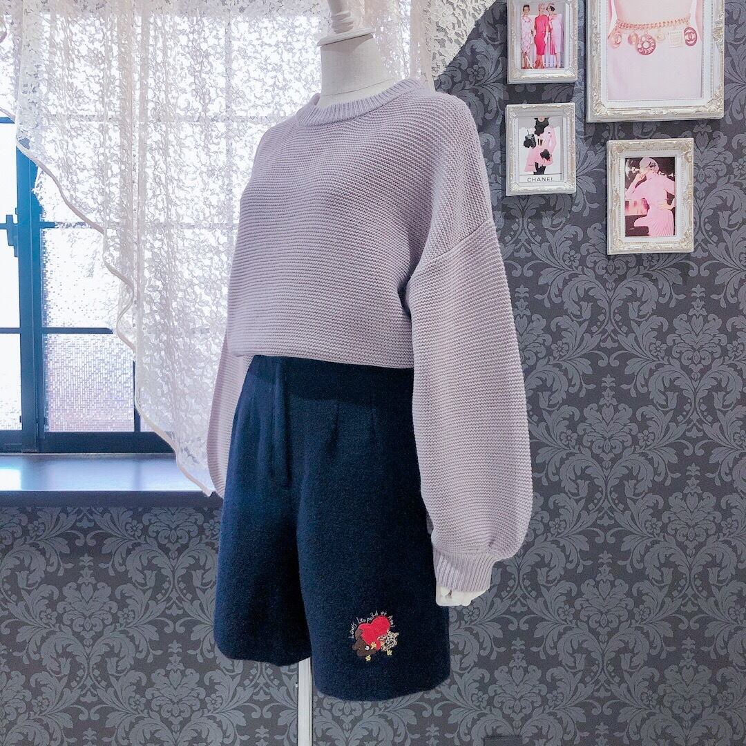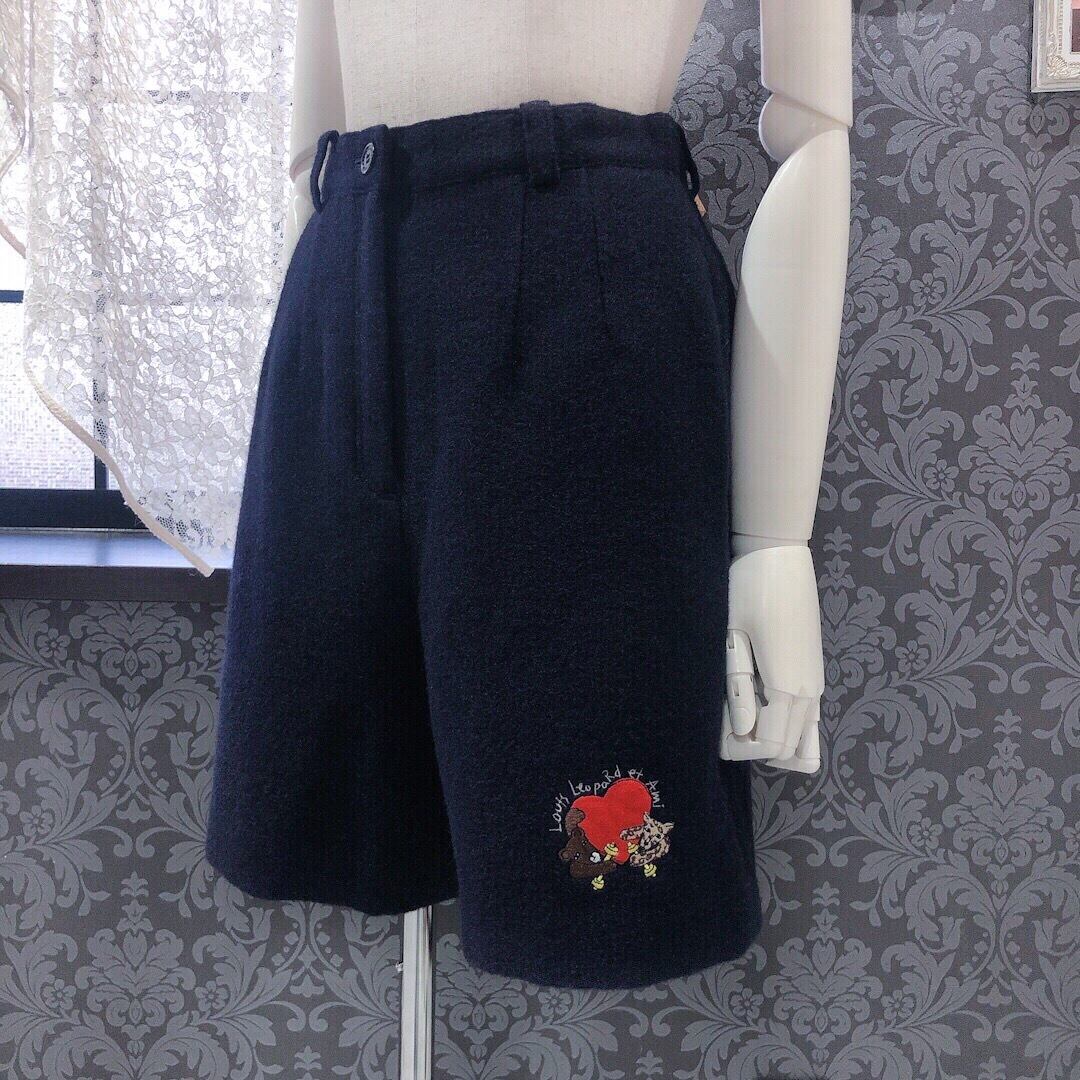 ヴィンテージキュロット / ネイビーハートアップリケショートパンツ