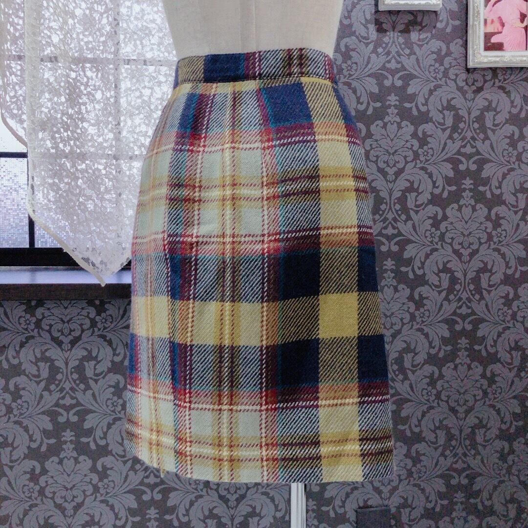 ヴィンテージスカート / 日本製チェック柄ウールラップスカート