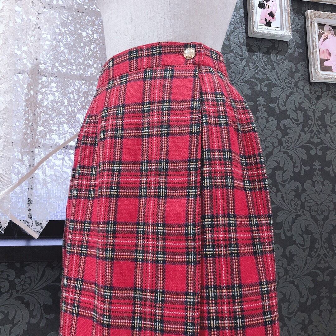 ヴィンテージスカート / 日本製レッド系タータンチェックラップスカート