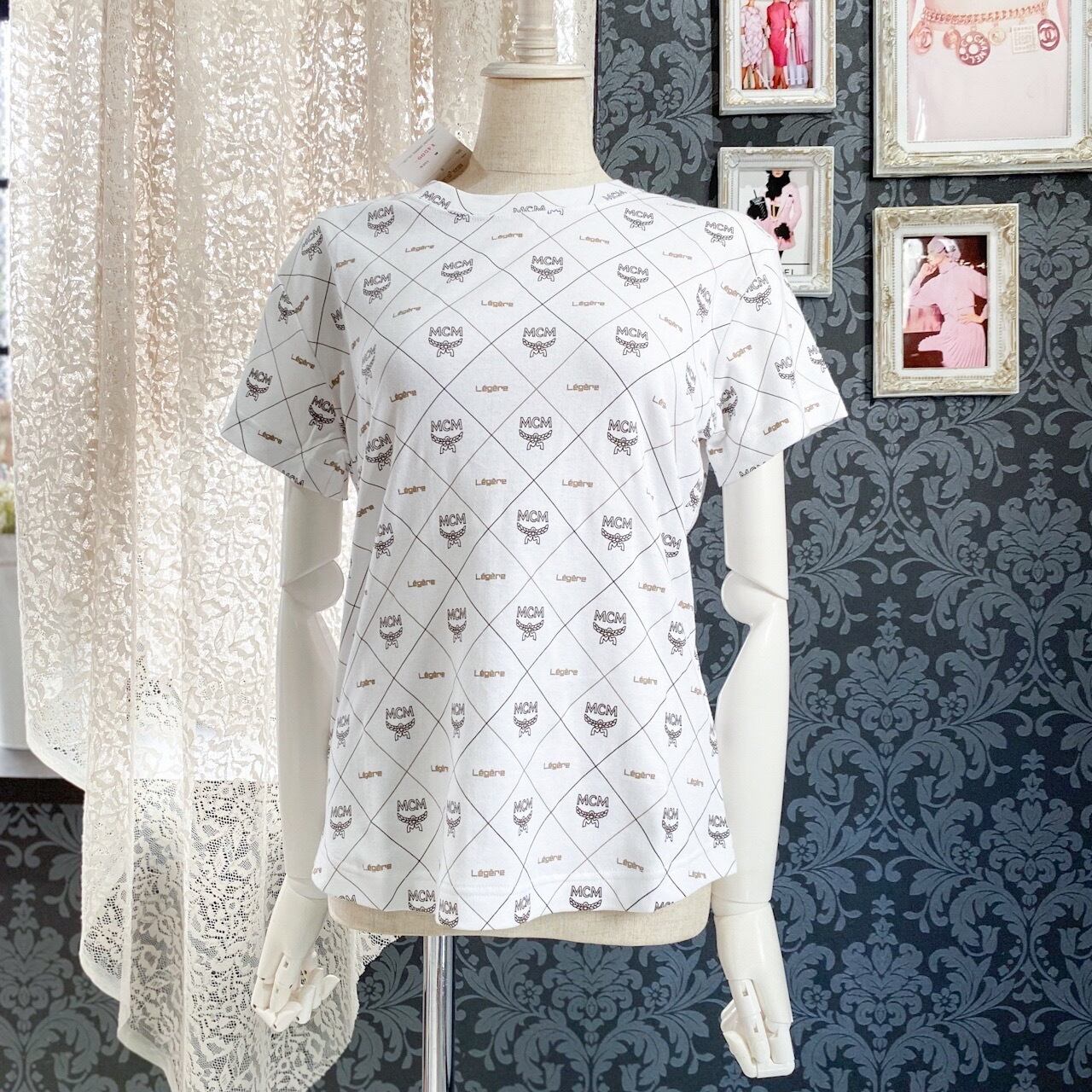 MCMのモノグラム柄。ホワイト地でモノグラムも茶系カラーなのでボトムスと合わせやすいです。柔らかめのTシャツで着心地良さそうです。ヴィンテージではありませんのでご了承ください。未使用品になり、ライセンス商品になり国内流通品になります。