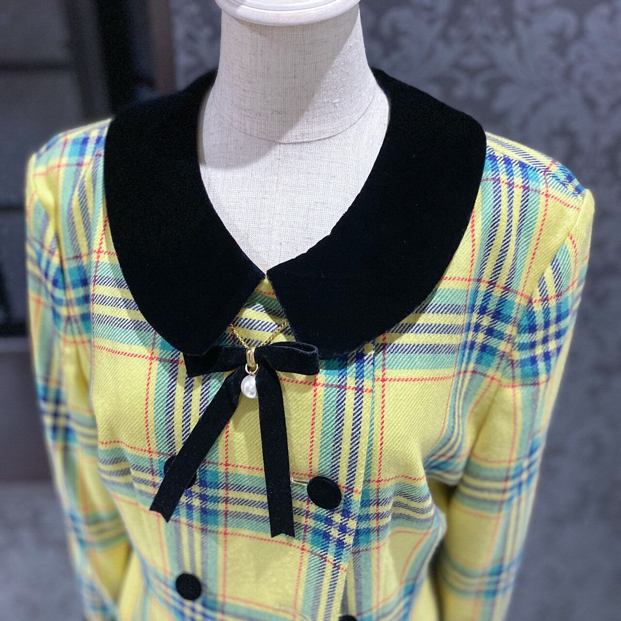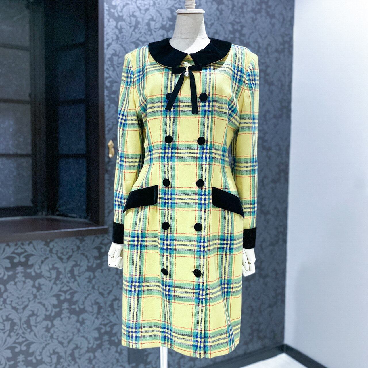 ウール100%のタータンチェックブレストコートになります。日本製になります。裏地もありますが記事自体は薄めになります。人によってはワンピースとして着る方もいらっしゃるかと思います。肩幅は少し大きいのでサイズをご確認ください。