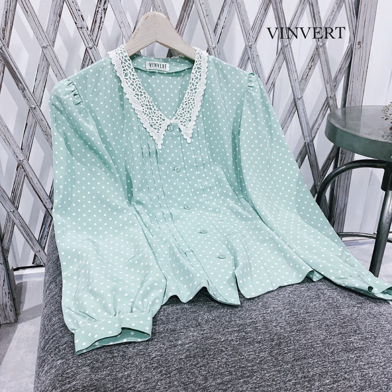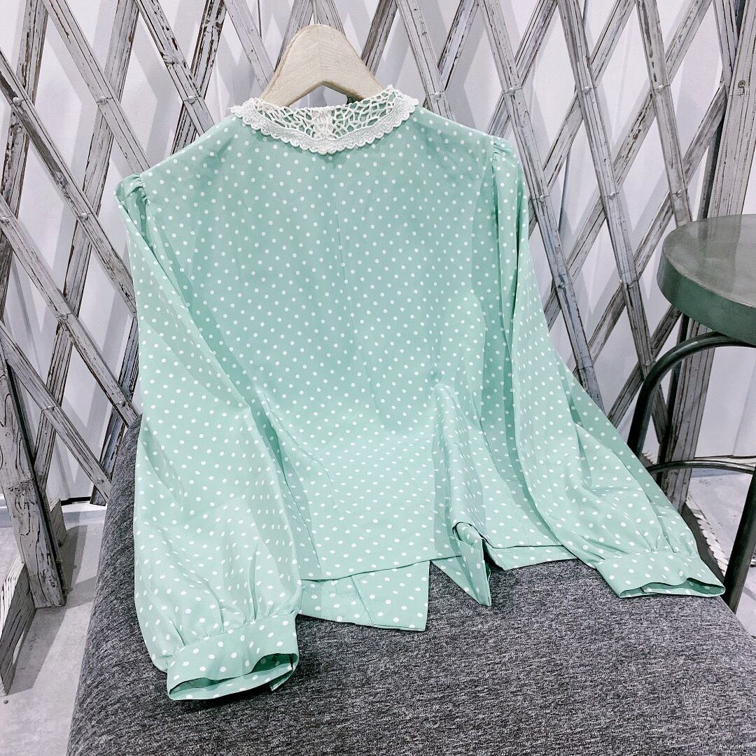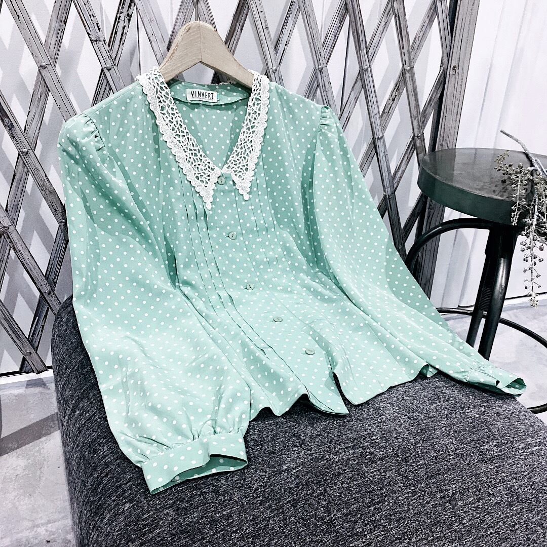 ◻︎ Type / フェミニンなブラウスです。きみどりとホワイトのドットは珍しいデザインで目を惹くと思います。