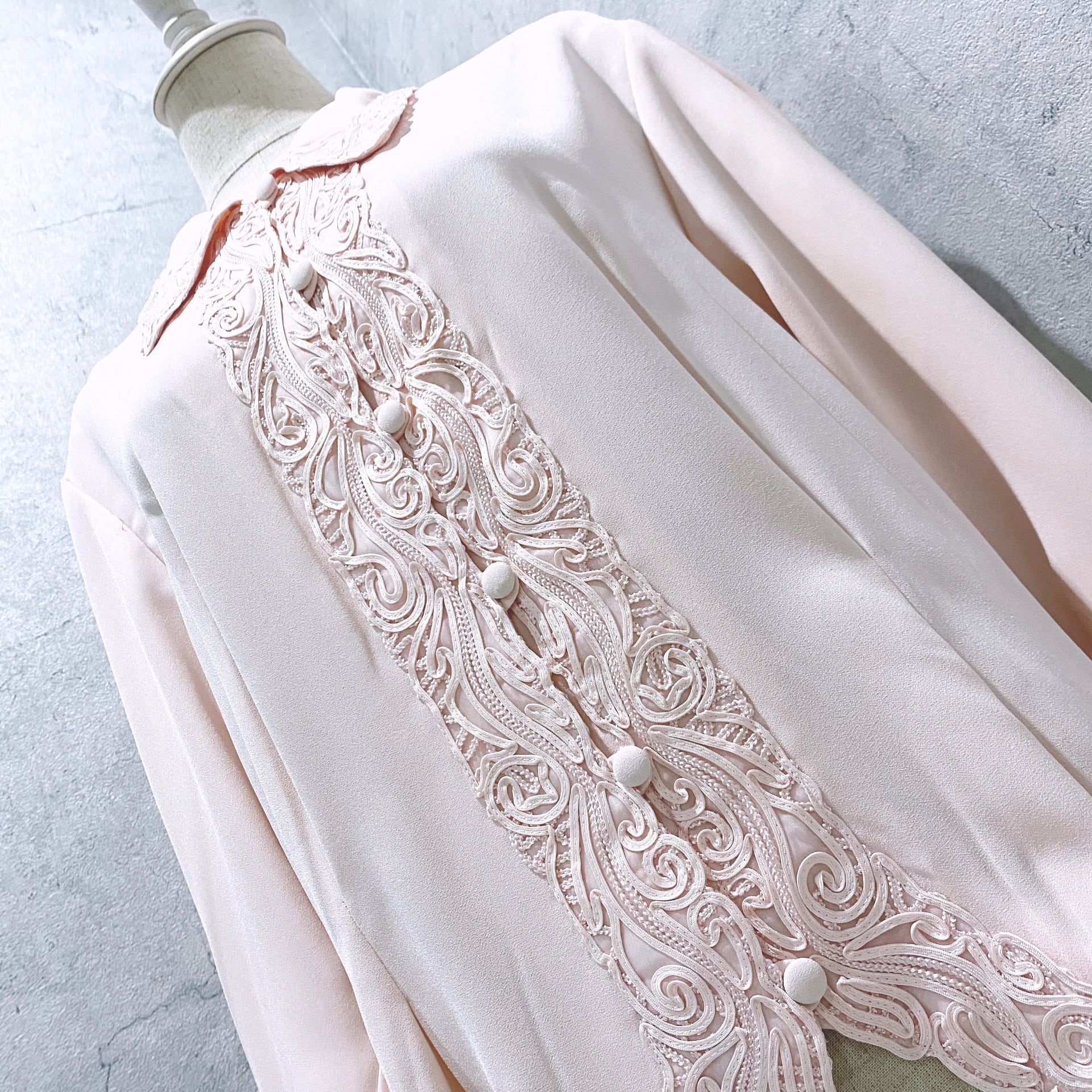 ヴィンテージブラウス / 東京ブラウスピンク日本製コード刺繍ブラウス