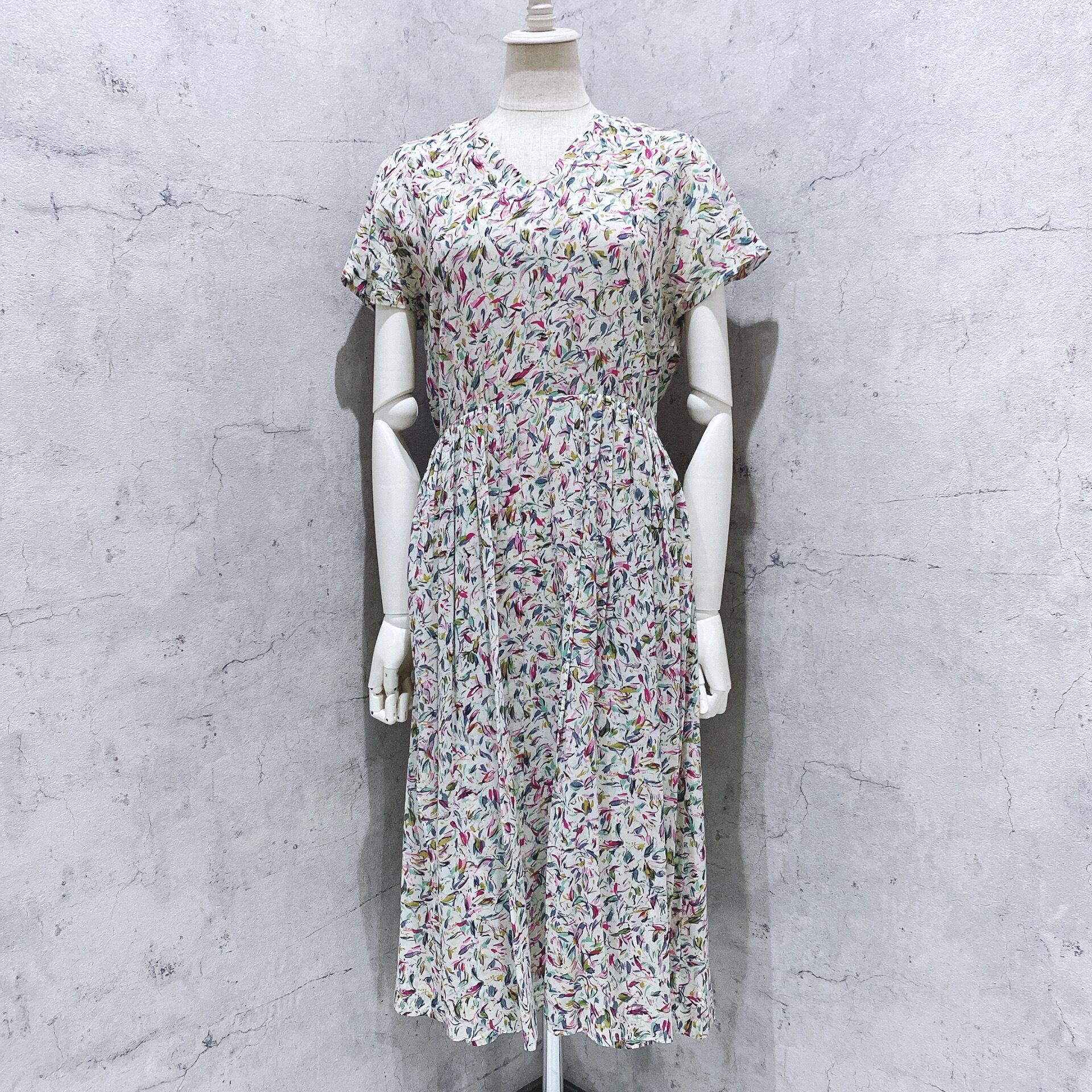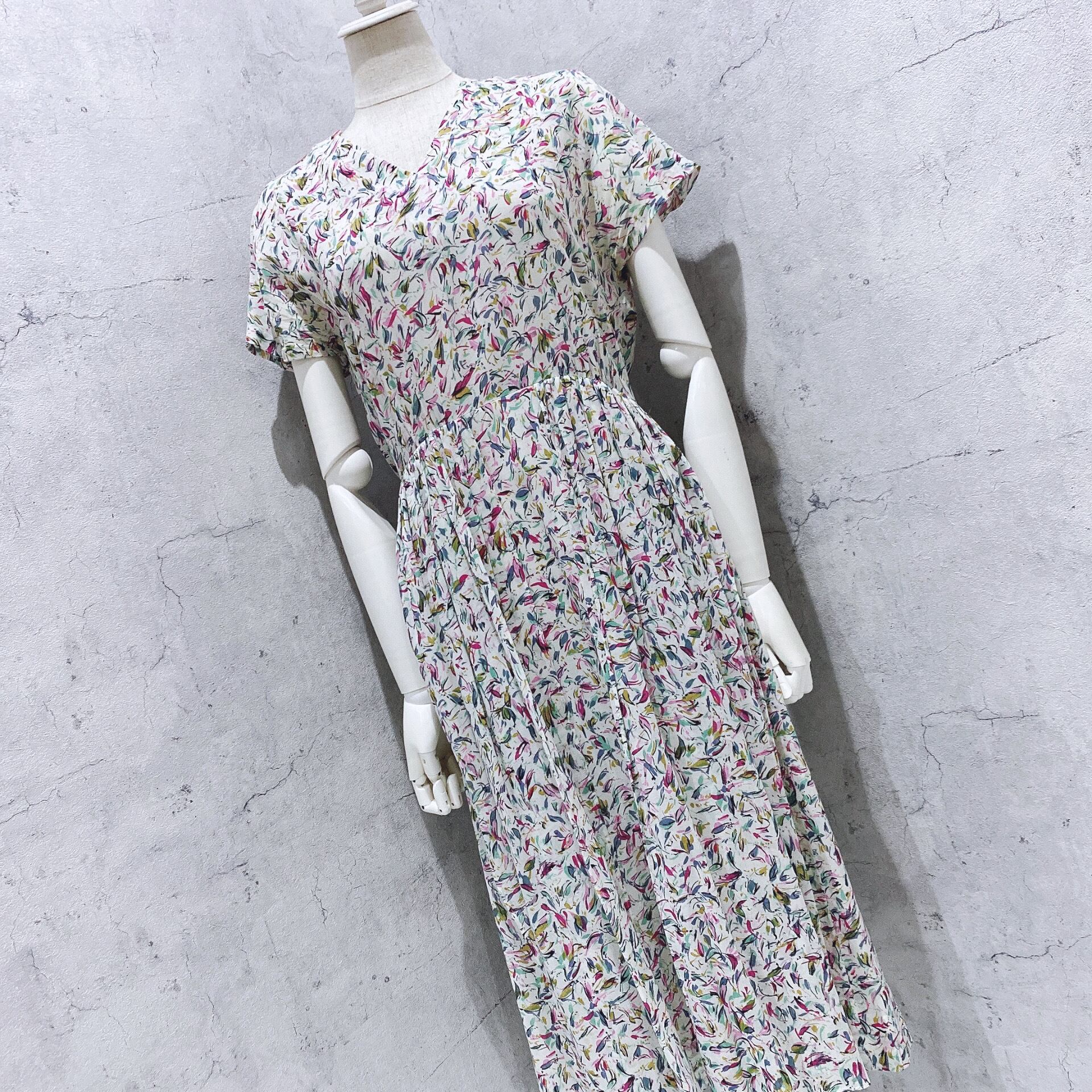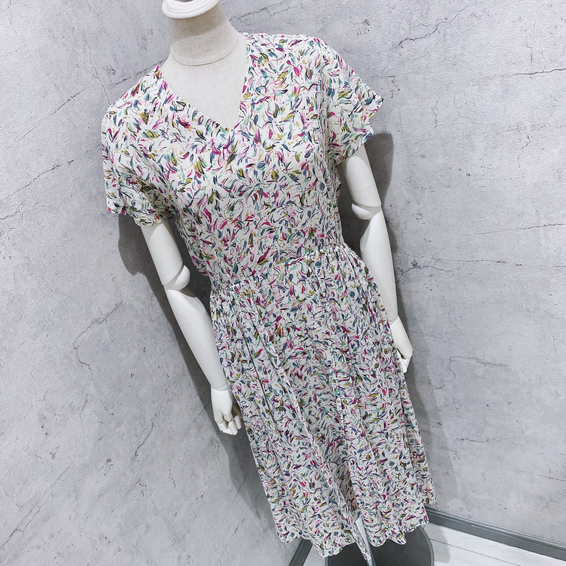 ヴィンテージワンピース / 高島屋日本製オフホワイトレトロ柄ロングワンピース