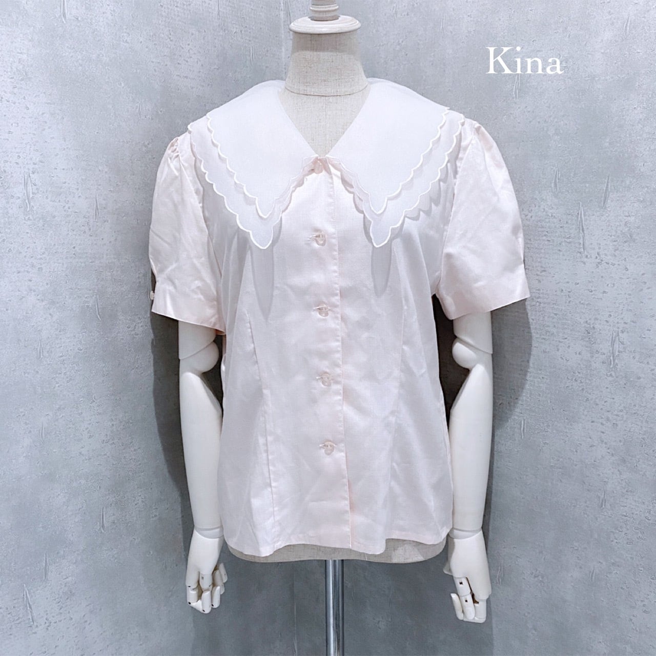 ◾️Type / ふんわり大きなスカラップ襟が特徴のブラウスです。また袖はパフスリーブになっていて全体的にボリュームのあるデザインなので、ボトムスはスッキリとしたデザインがおすすめです。