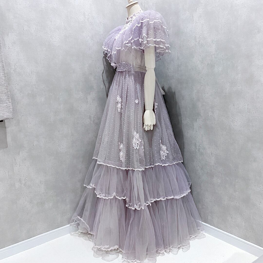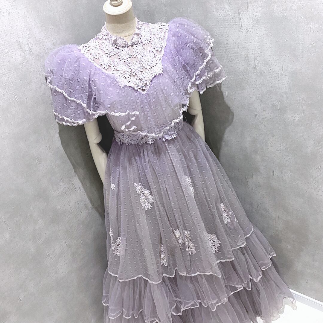 < KIMIE MURAKAMI > Purple Vintage dress flower&dot motif tulle princess wedding dress