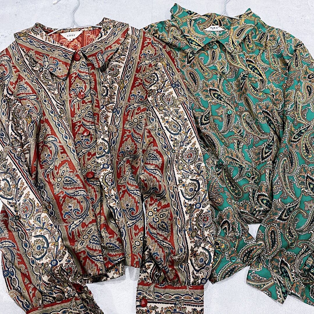 日本製グリーンペイズリーヴィンテージブラウス JVAP1