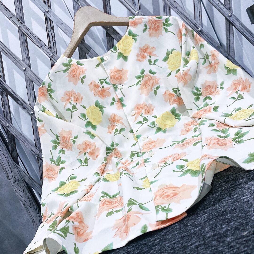 ヴィンテージブラウス 背中ボタンカラフル薔薇柄長袖ブラウス