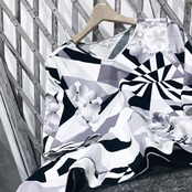 < LEONARD SPORT > レオナール日本製モノトーン幾何学×花柄ストレッチトップス
