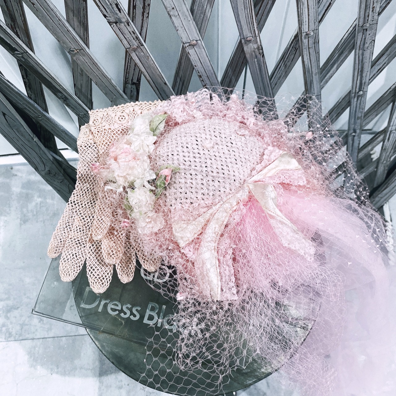< DRESS BLACK > ドレスブラック日本製ピンクカクテルハット&グローブセット
