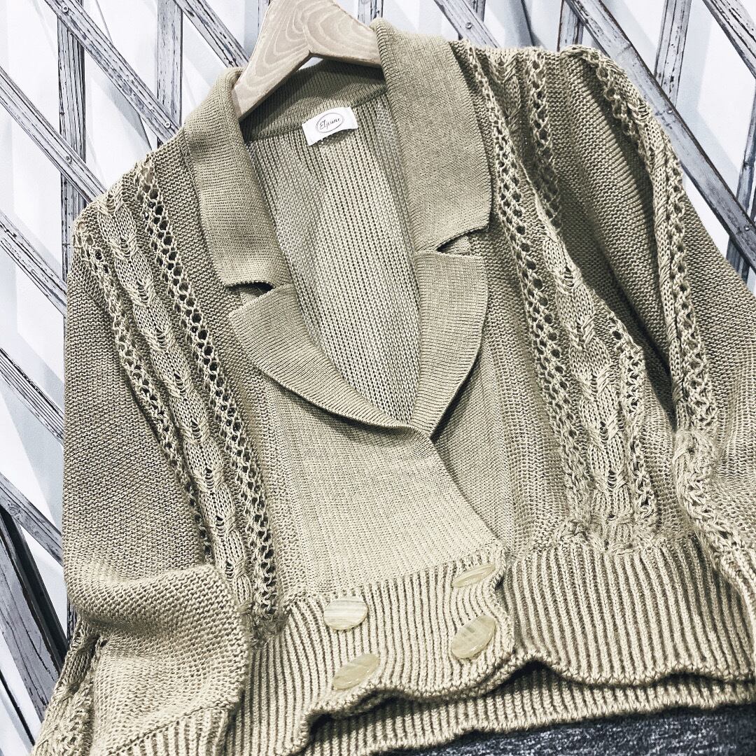 ヴィンテージカーディガン / 日本製ベージュケーブル編みテーラードダブルブレストカーディガン
