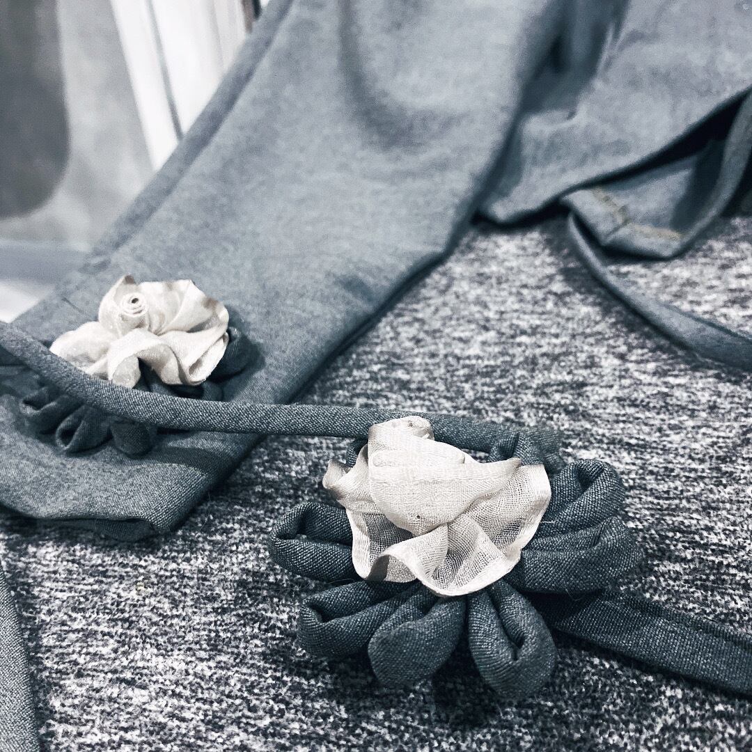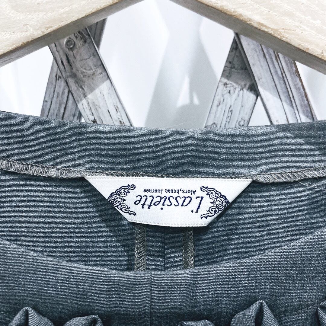 ヴィンテージトップス / 日本製グレーフラワーモチーフ×リボン長袖ドルマントップス