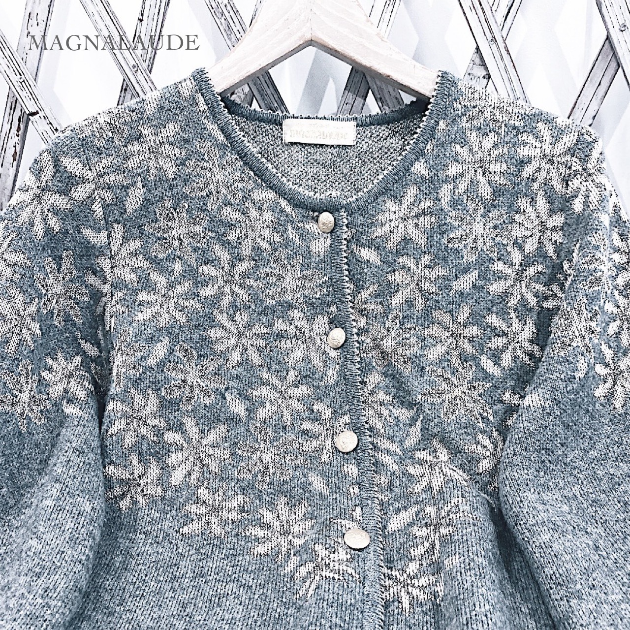 ヴィンテージカーディガン / 日本製グレーラメ花柄カーディガン
