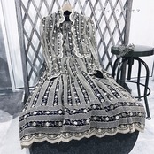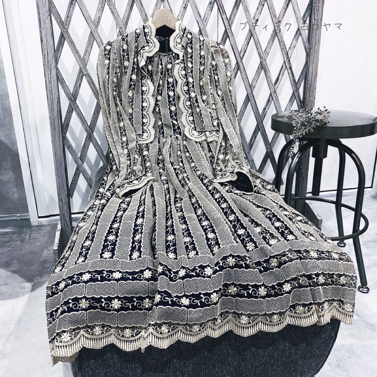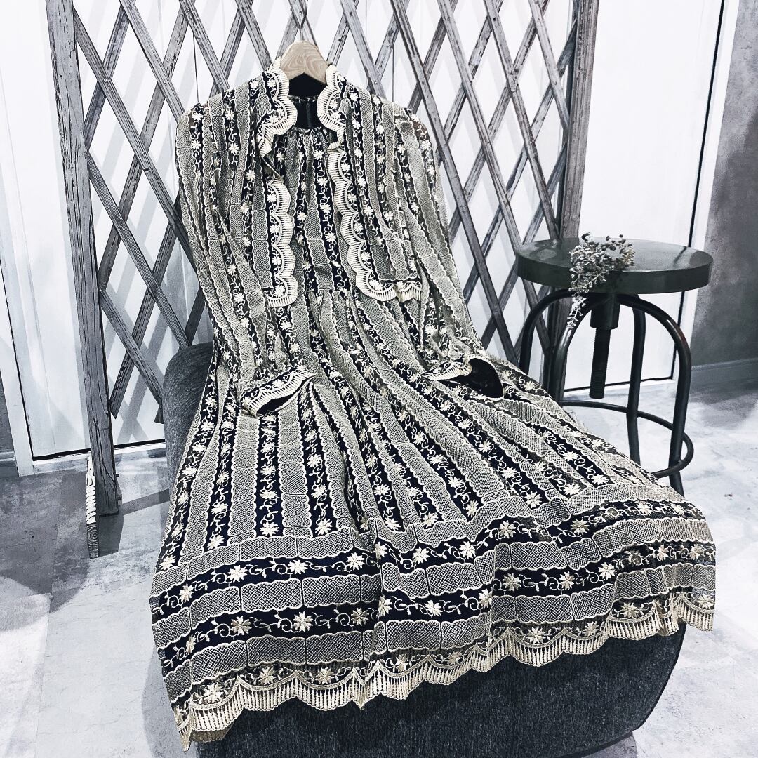 ヴィンテージセットアップ / 日本製ネイビー×ベージュ総刺繍ジャケット&ワンピース