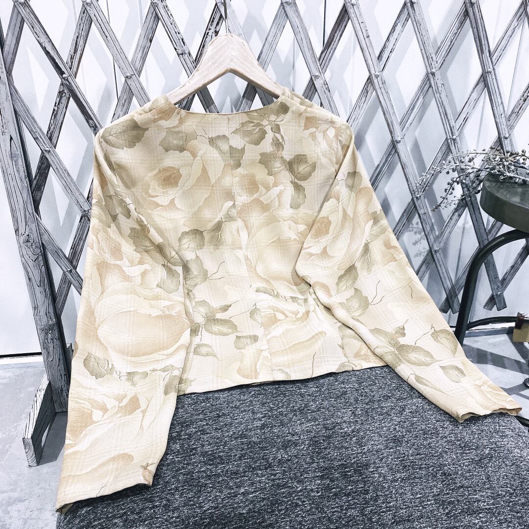 ヴィンテージジャケット / 日本製ベージュ花柄ソフトノーカラー ジャケット