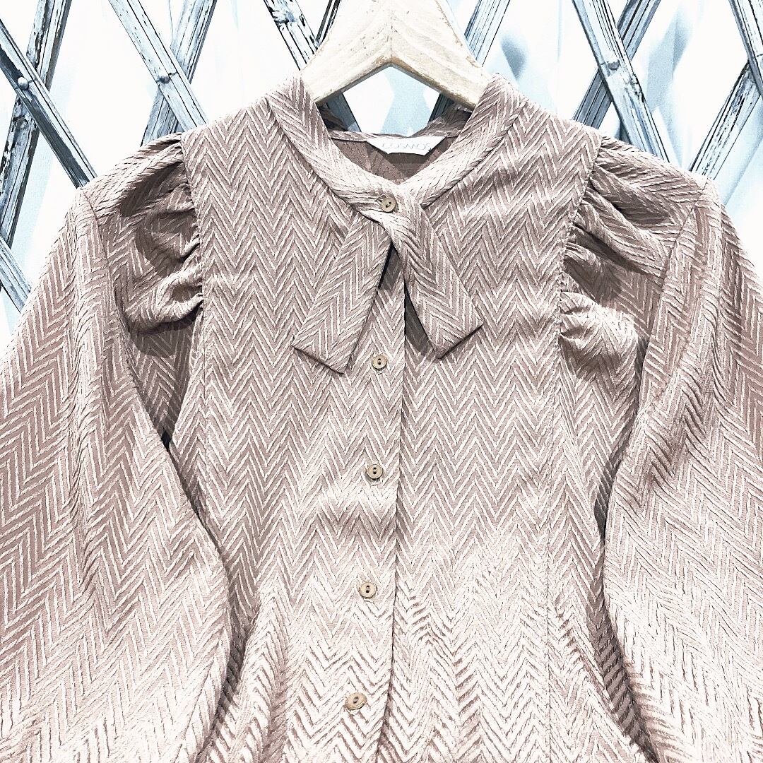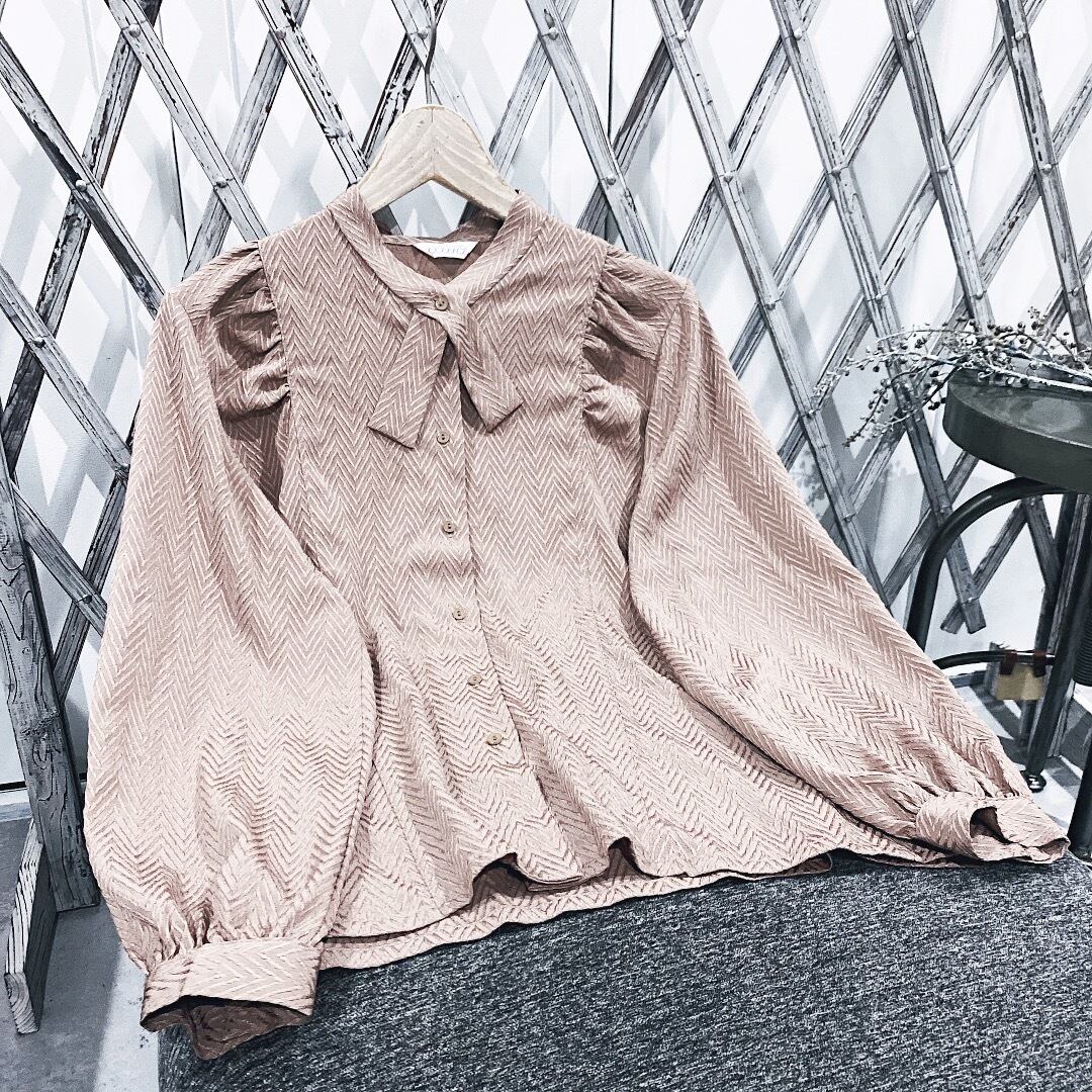 ヴィンテージブラウス / 日本製ブラウンエンボスボウタイ長袖ブラウス
