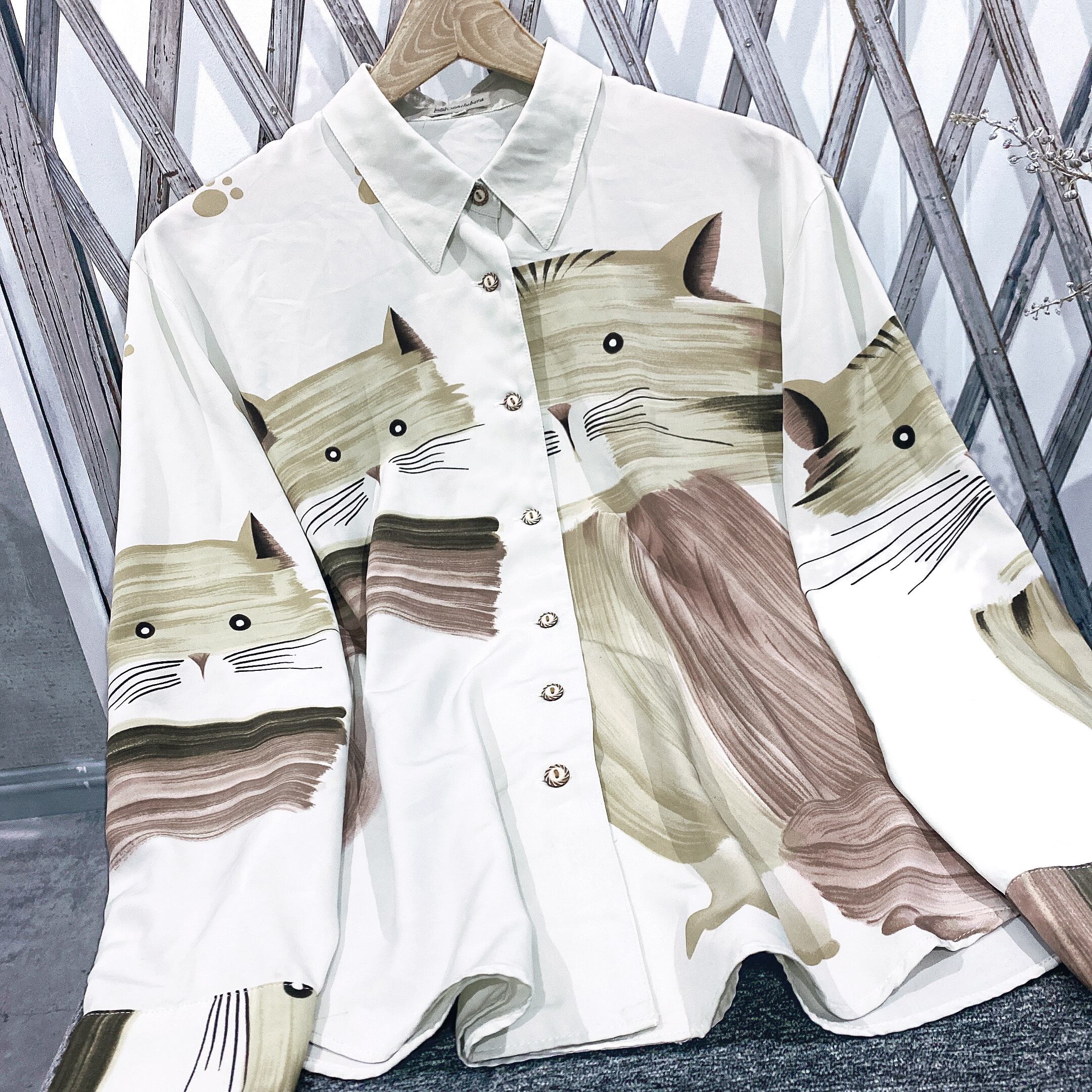 猫さんの柄が面でそれぞれ違うという凝ったブラウスです。
