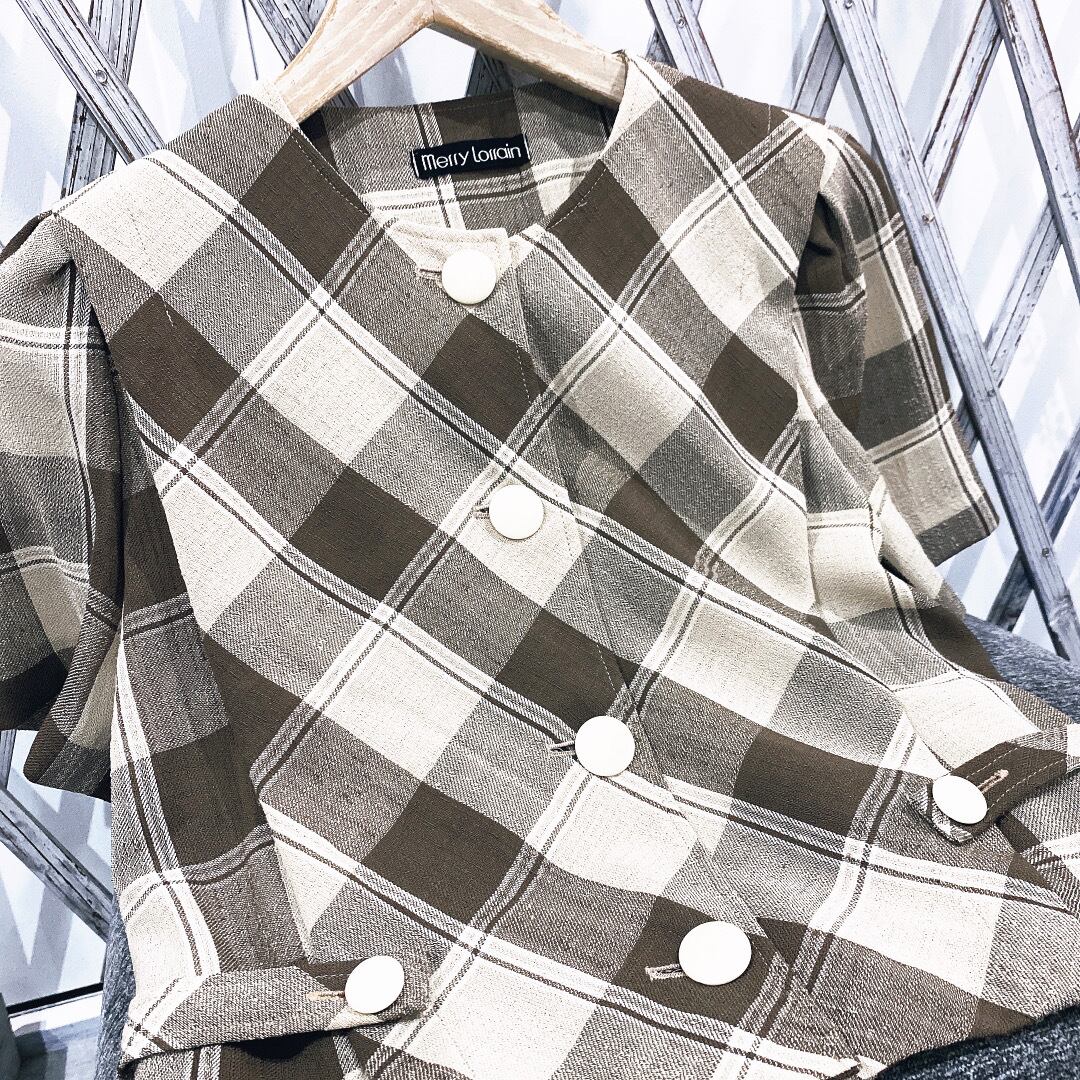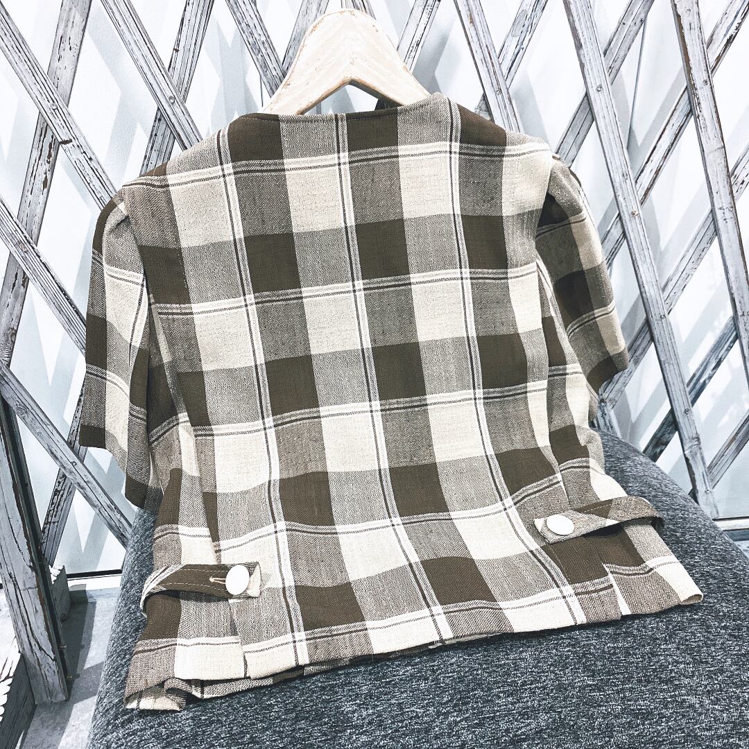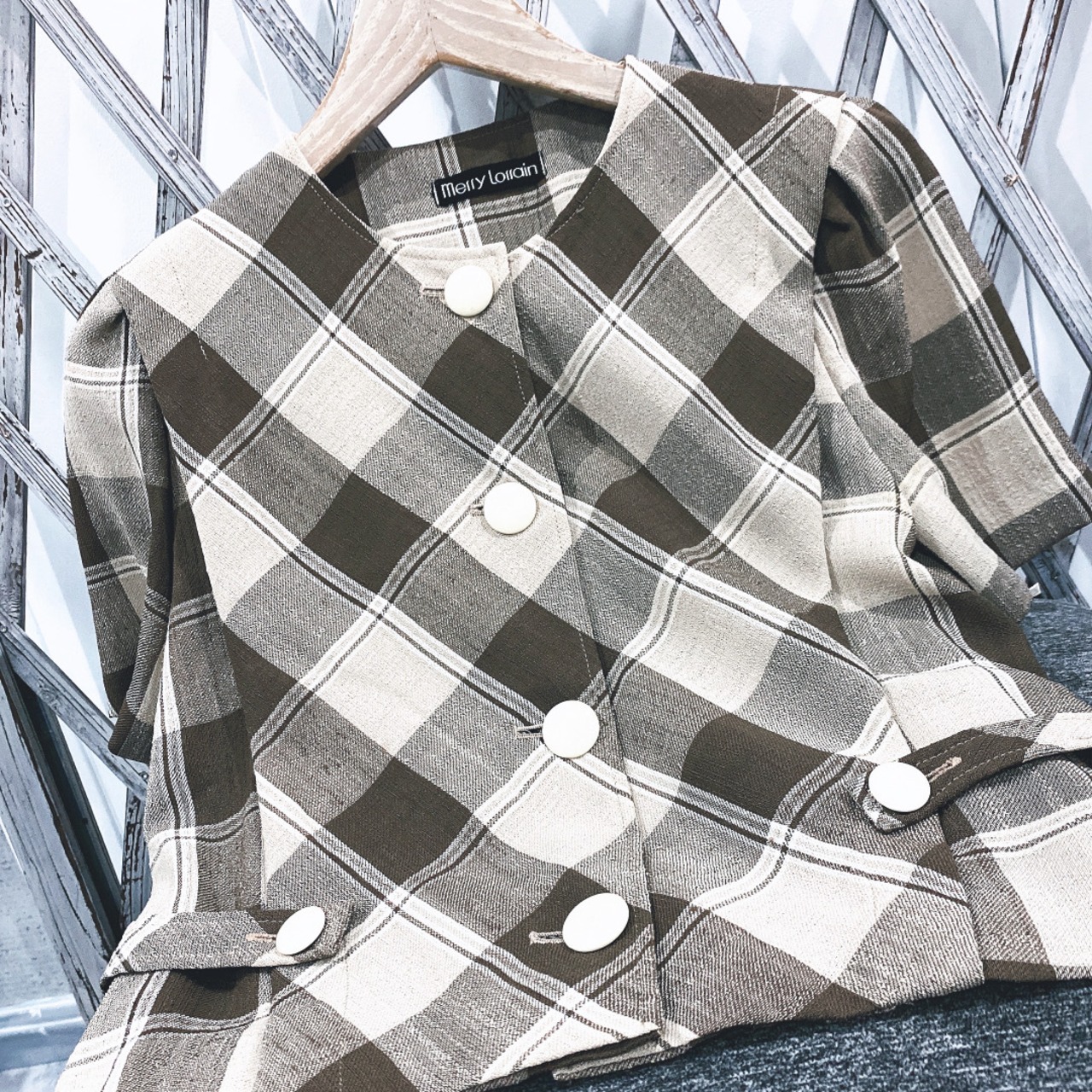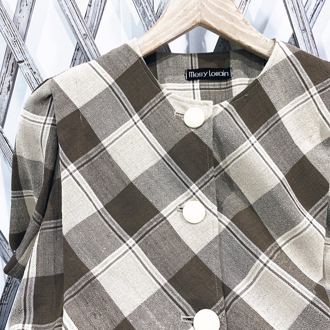 ヴィンテージジャケット / 日本製ブラウン×ベージュチェック半袖ジャケット