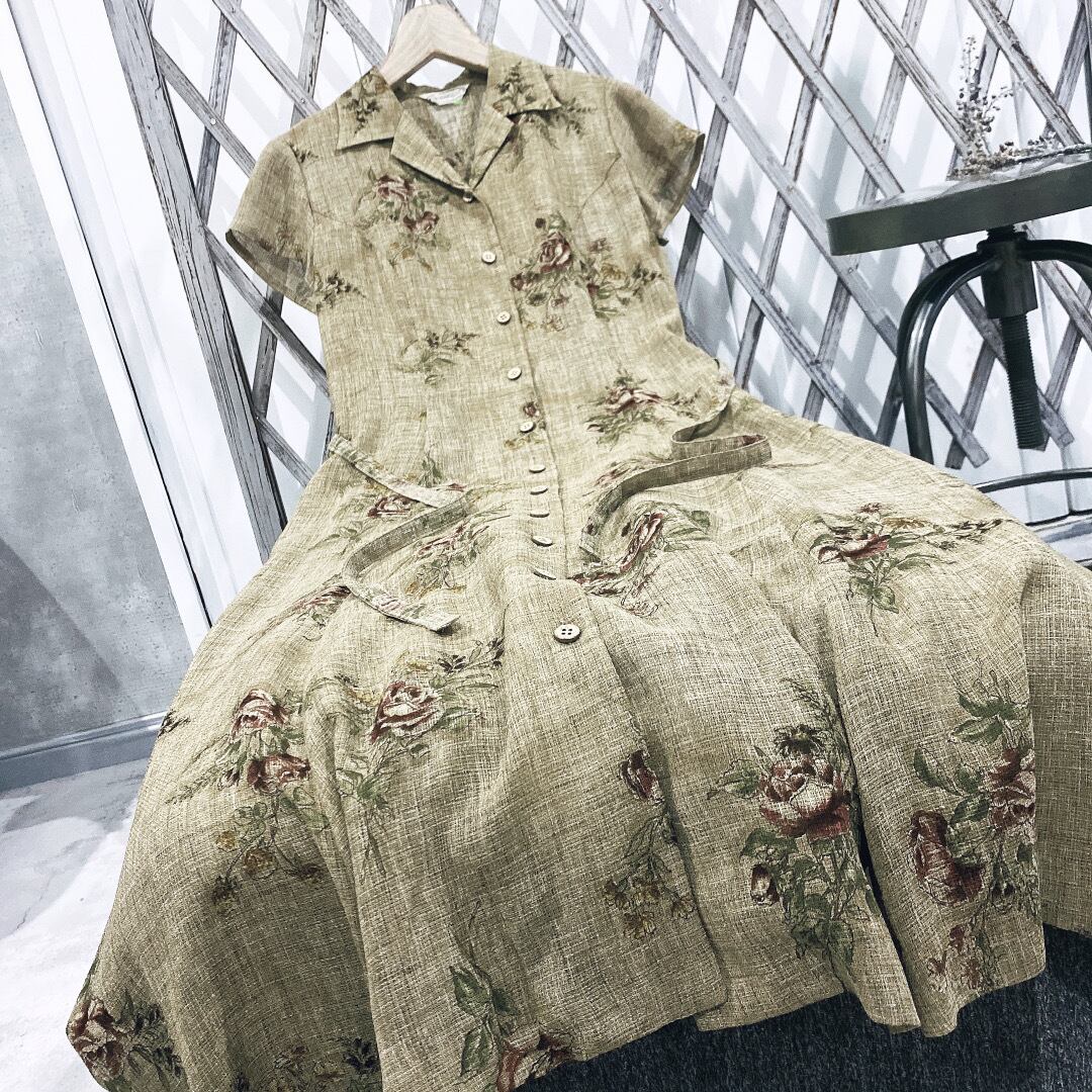 ヴィンテージワンピース / 日本製ブラウン渋み花柄半袖ロングワンピース
