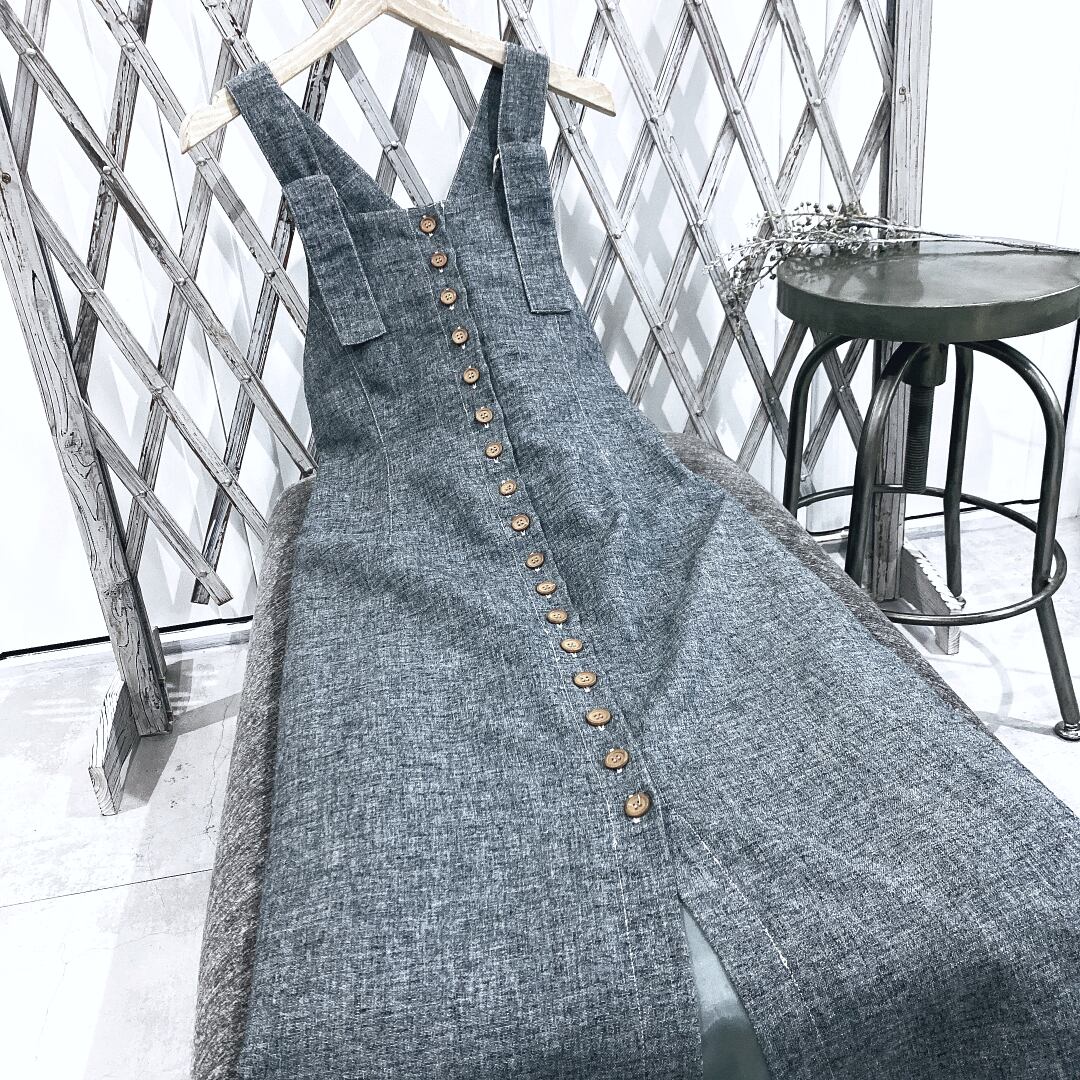 ヴィンテージワンピース / 日本製杢グレー前ボタンジャンパースカート