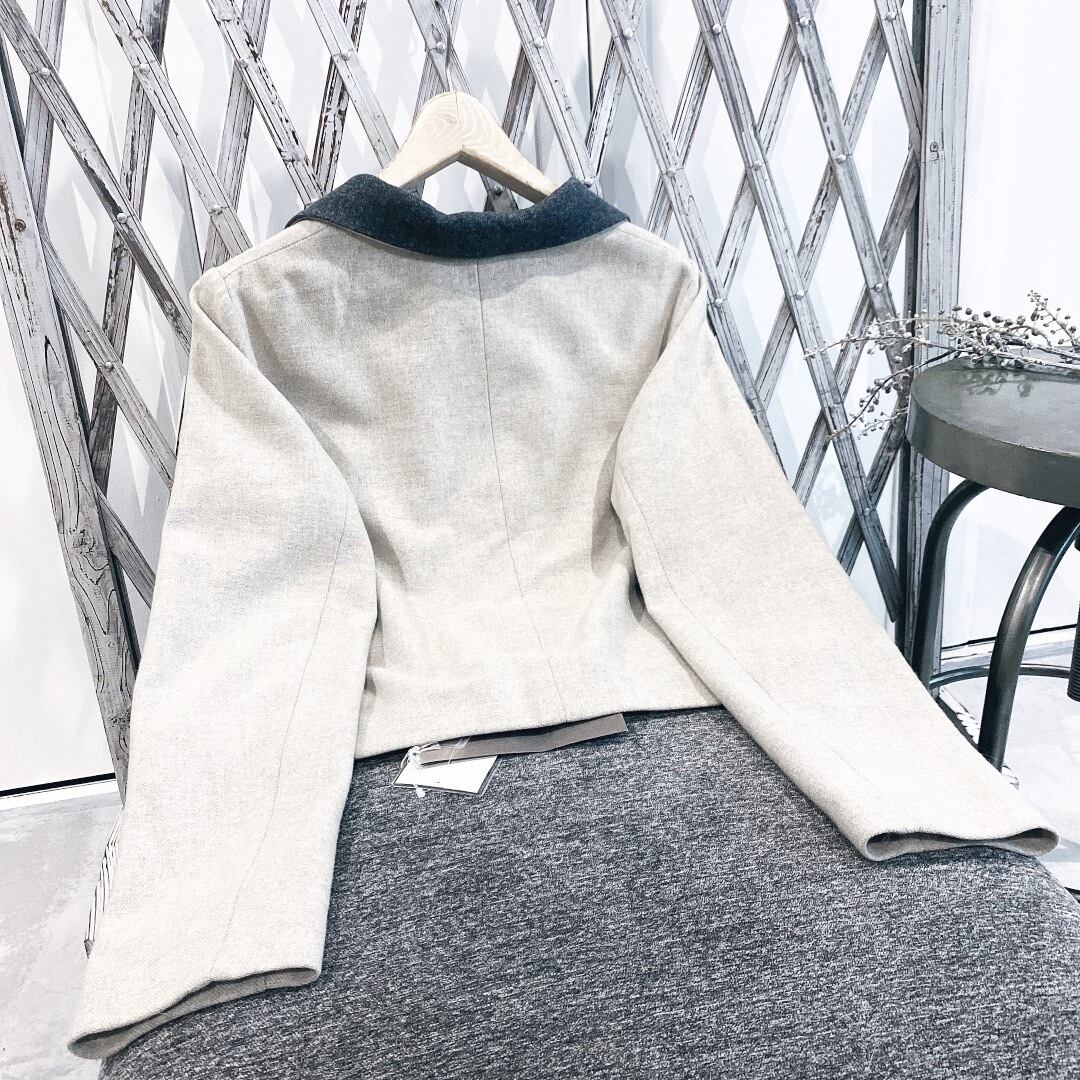 ベージュとグレーのバイカラーが優しい色合いのジャケットです。