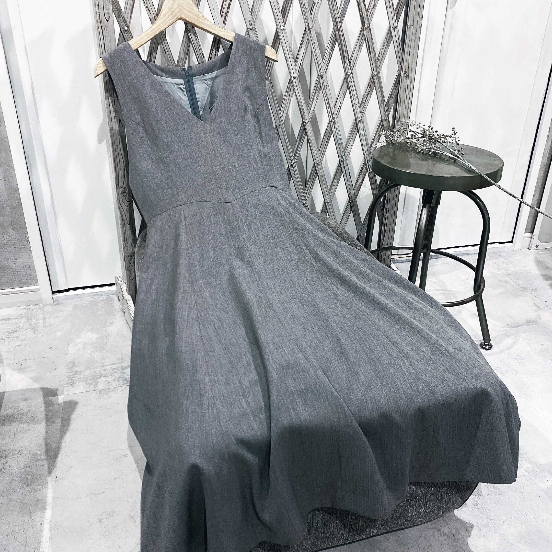 ヴィンテージワンピース / 日本製グレーベーシックロングワンピース