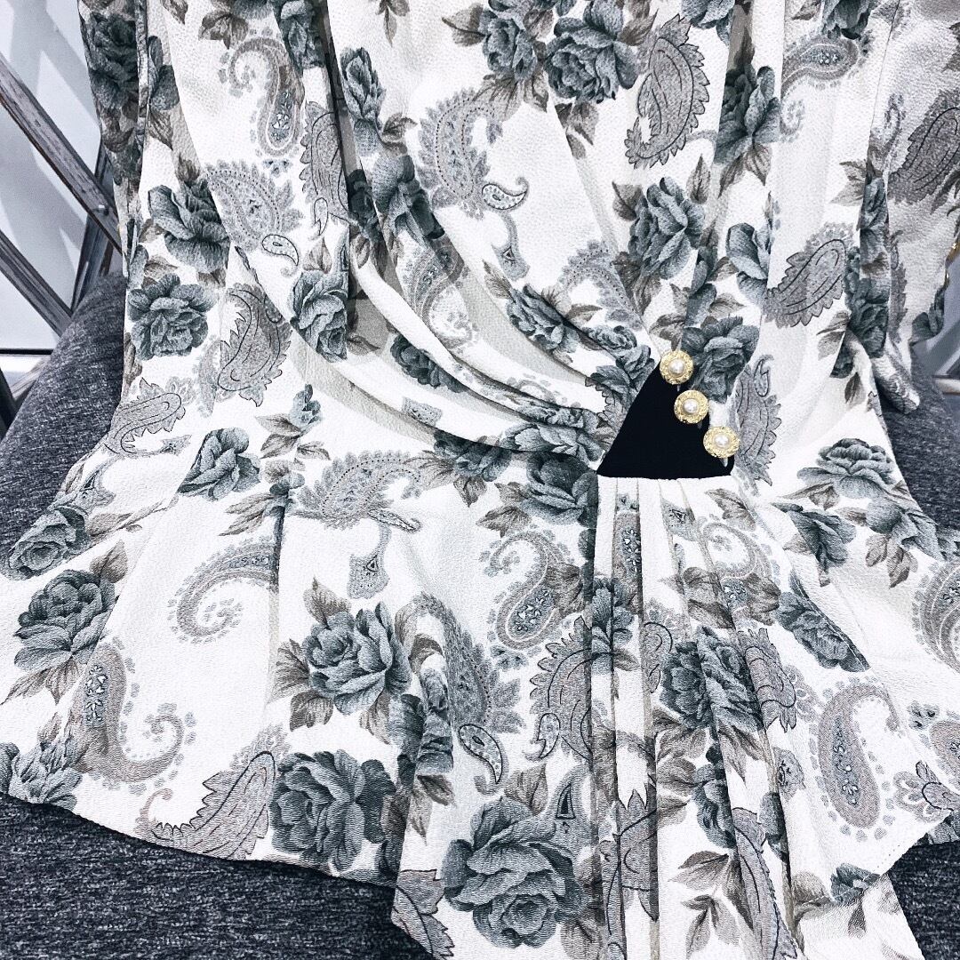 日本製ホワイト×グレー×薔薇×ペイズリーカシュクールヴィンテージ トップス