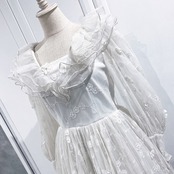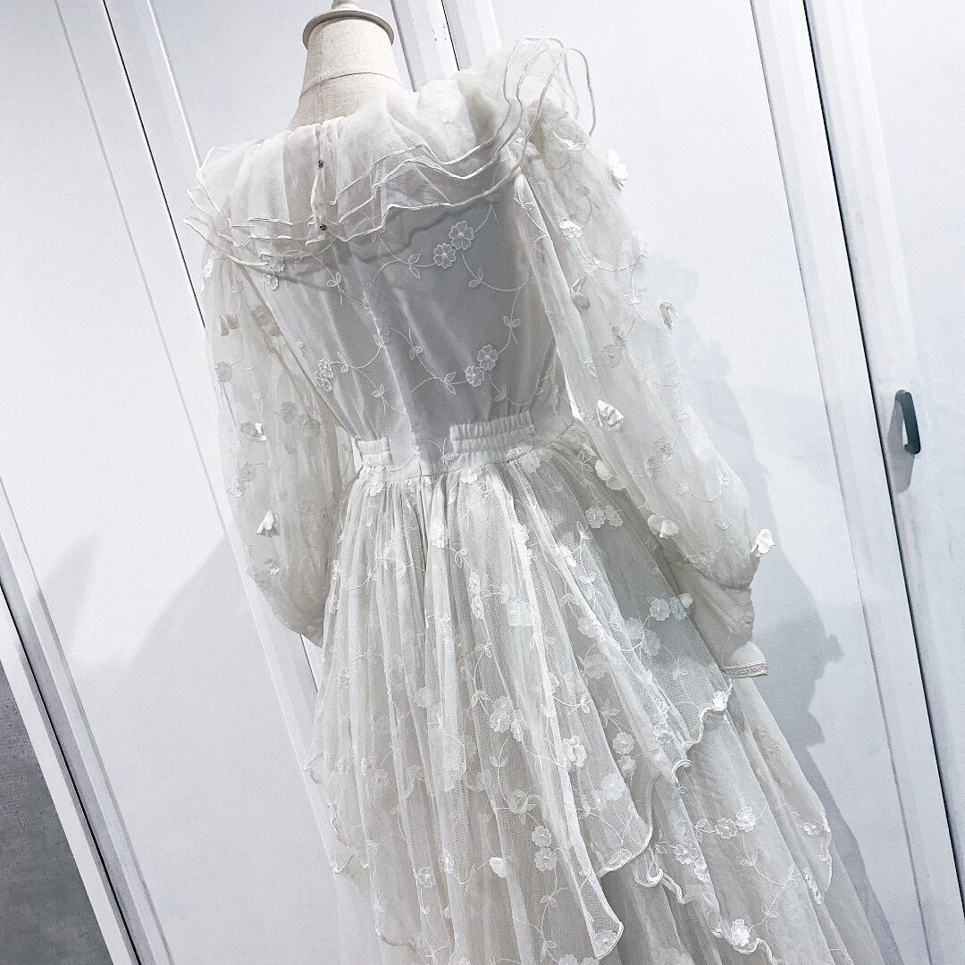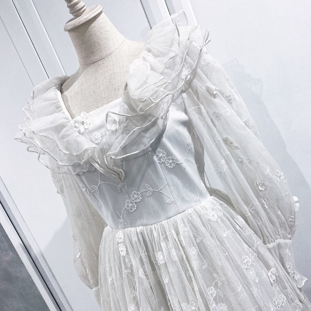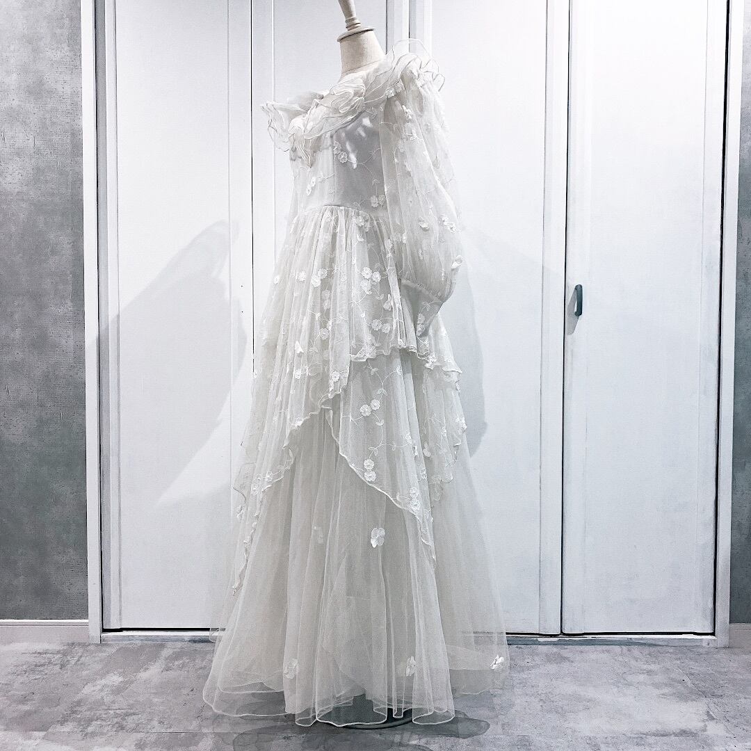 フラワーモチーフくすみヴィンテージウエディングドレス