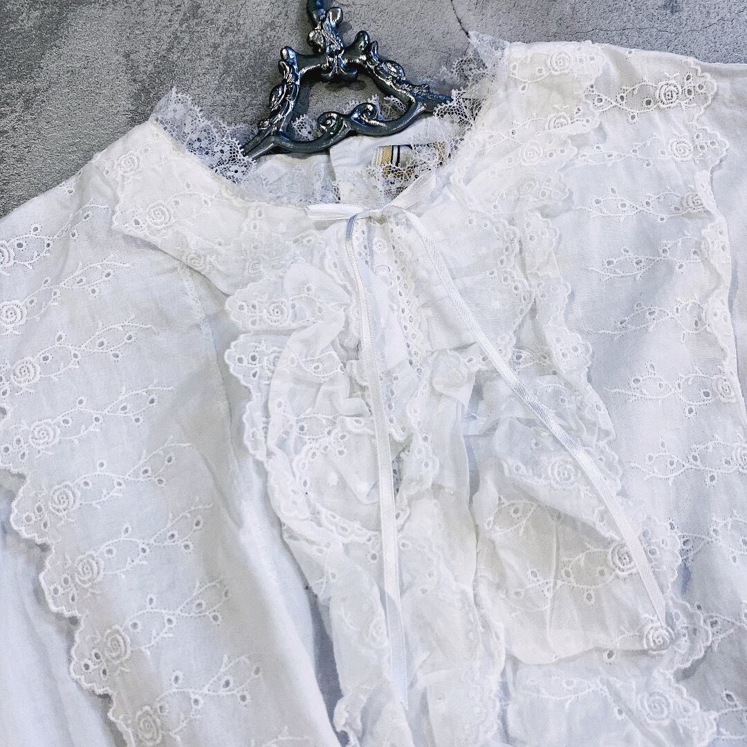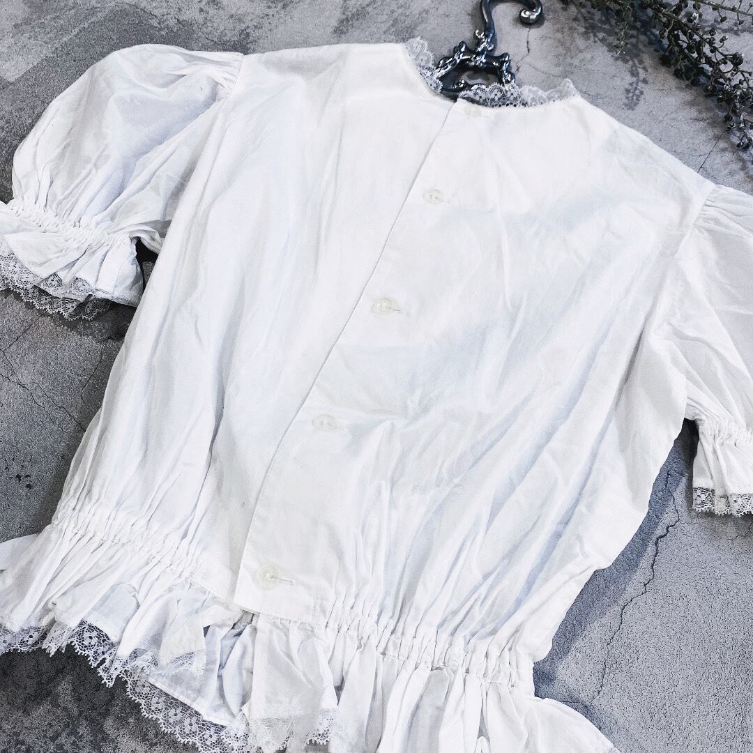 日本製ホワイトフリルパフスリーブヴィンテージブラウス