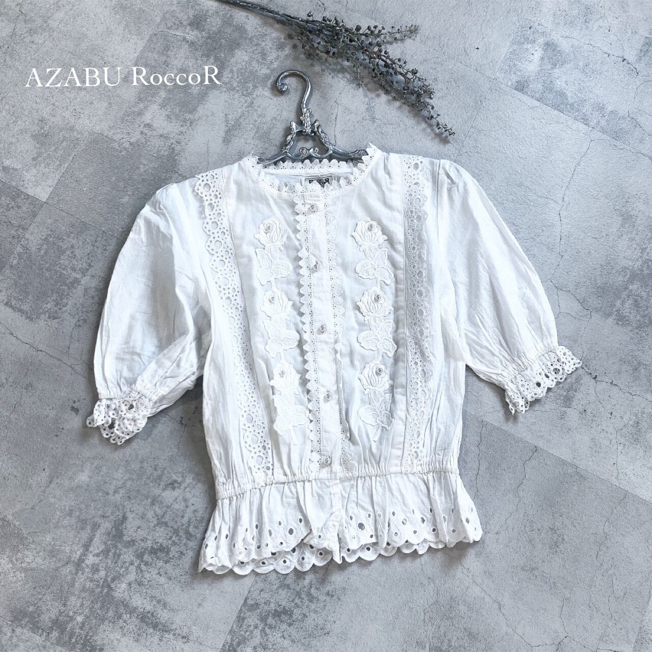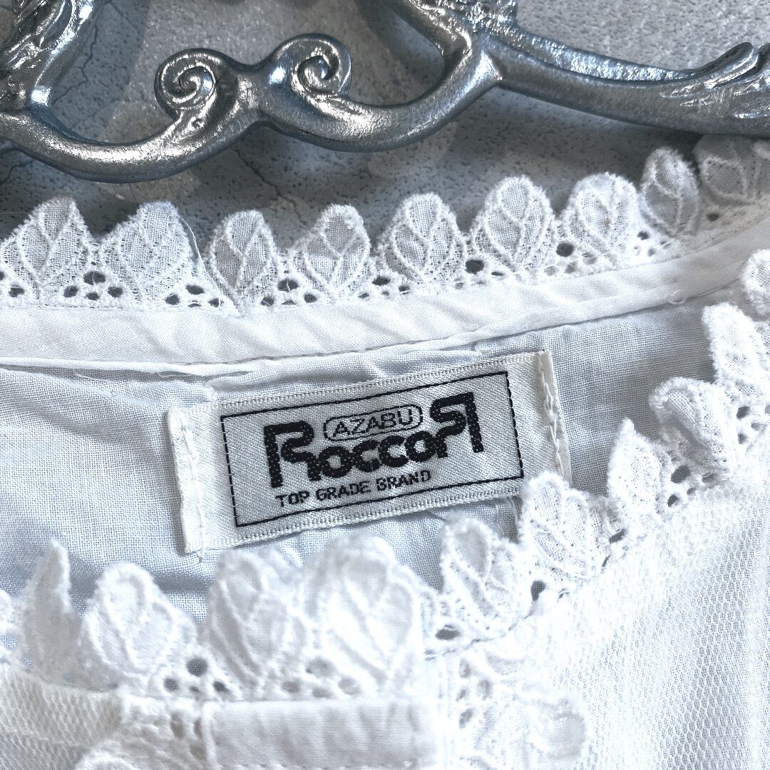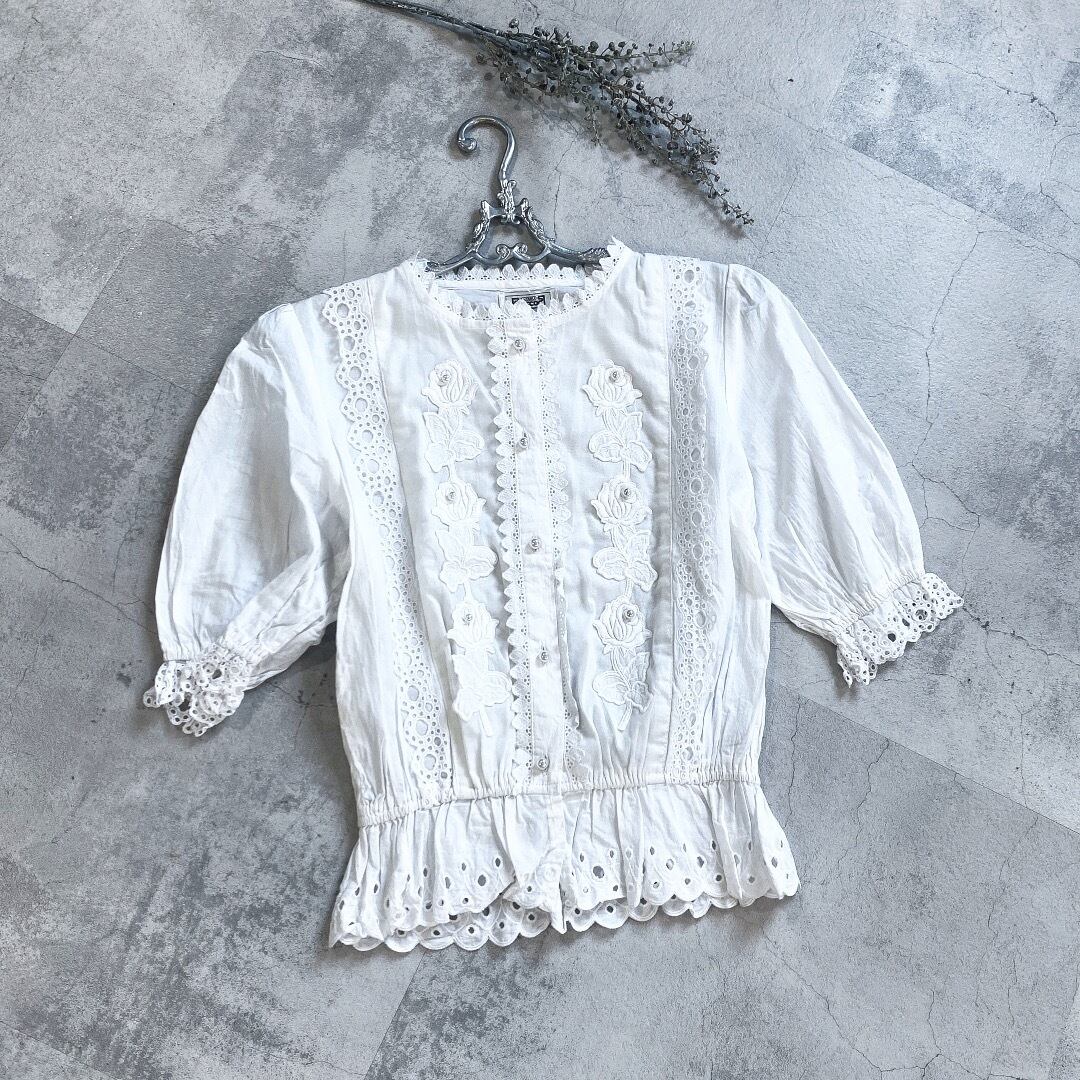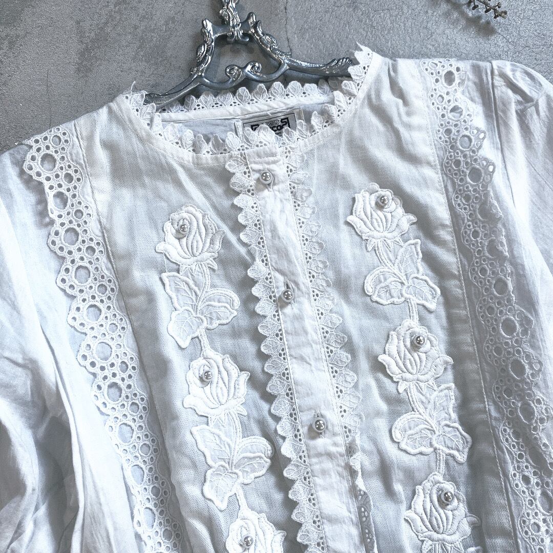 日本製ホワイトフラワーモチーフ×フリルヴィンテージコットンブラウス