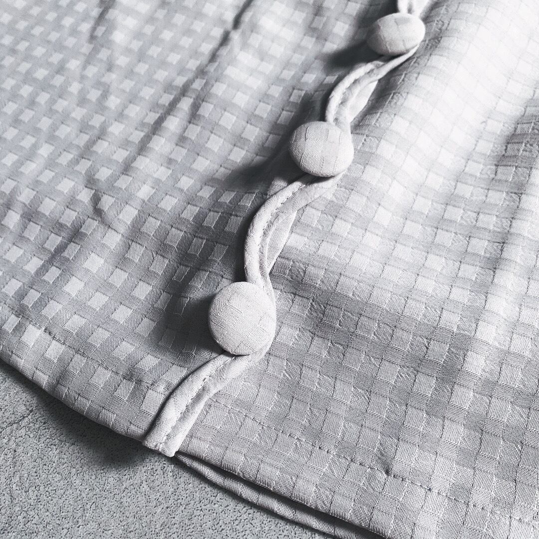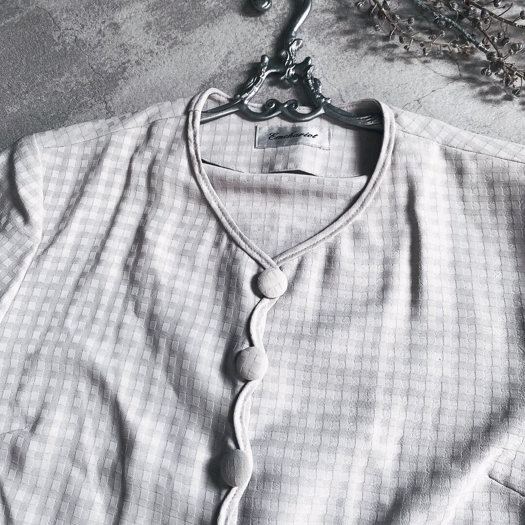 グレーギンガムチェック半袖クロップドヴィンテージとろみジャケット