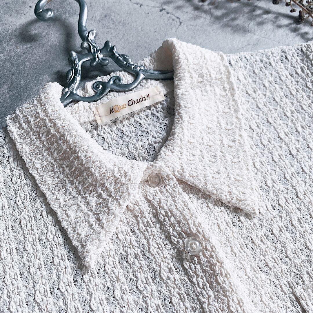 日本製オフホワイトレース編み半袖ヴィンテージストレッチブラウス