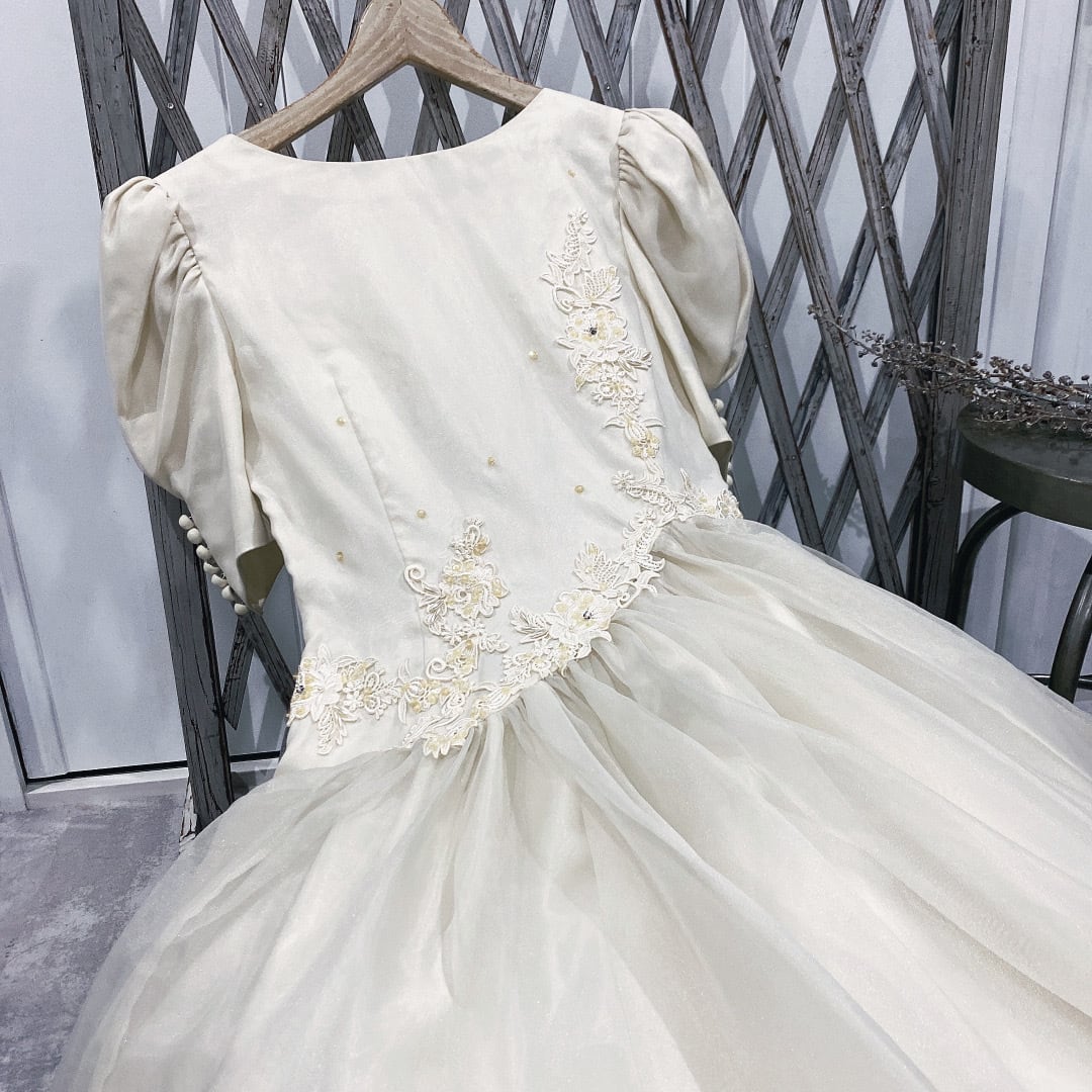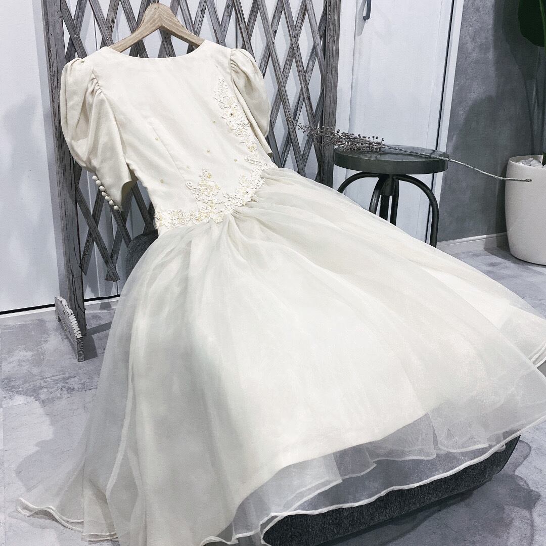 日本製オフホワイトグラデパフスリーブ×チュールヴィンテージドレス