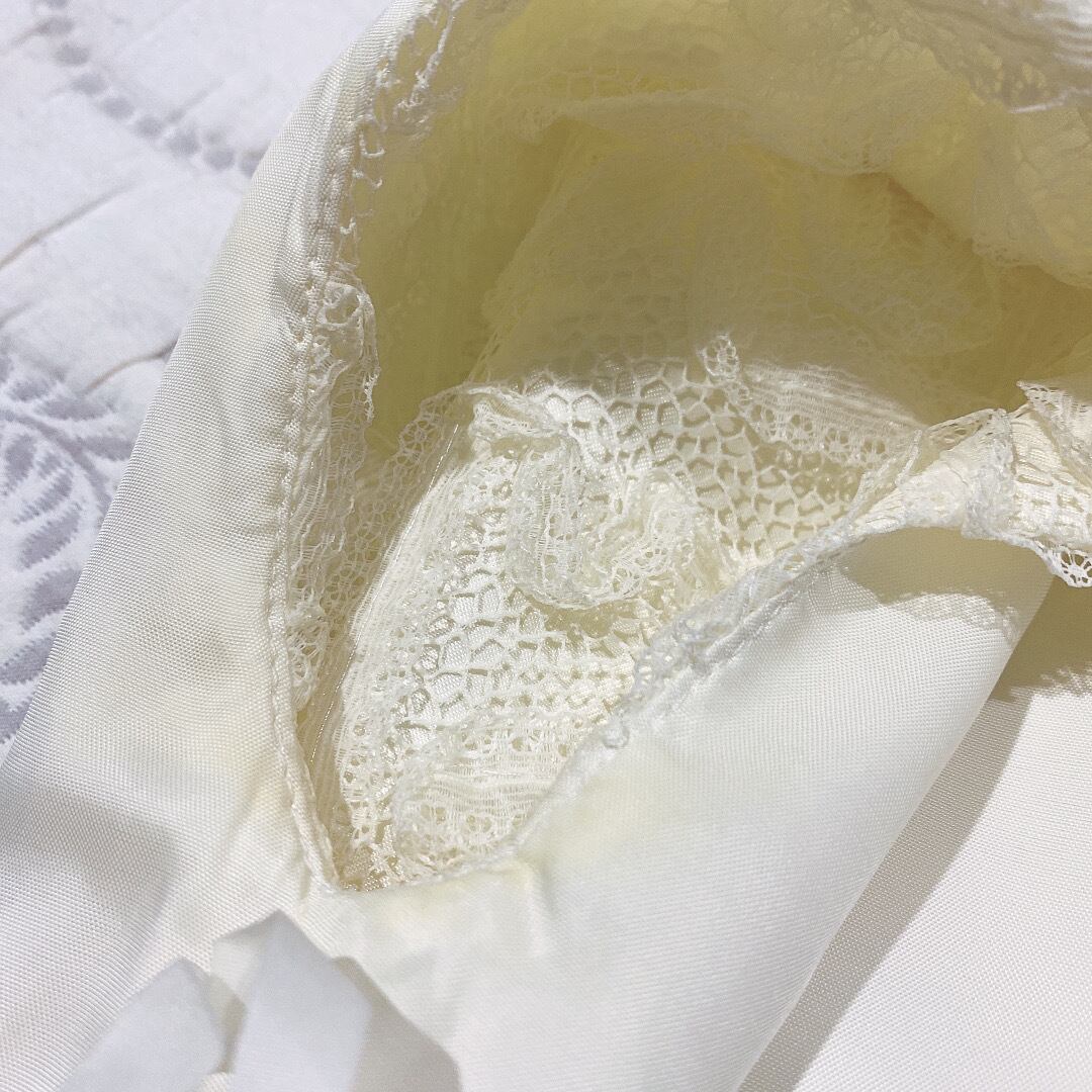 裏地の脇部分に黄ばみがあります。表からは分かりませんが写真にてご確認いただくようお願いいたします。また裾付近にもシミがあります。